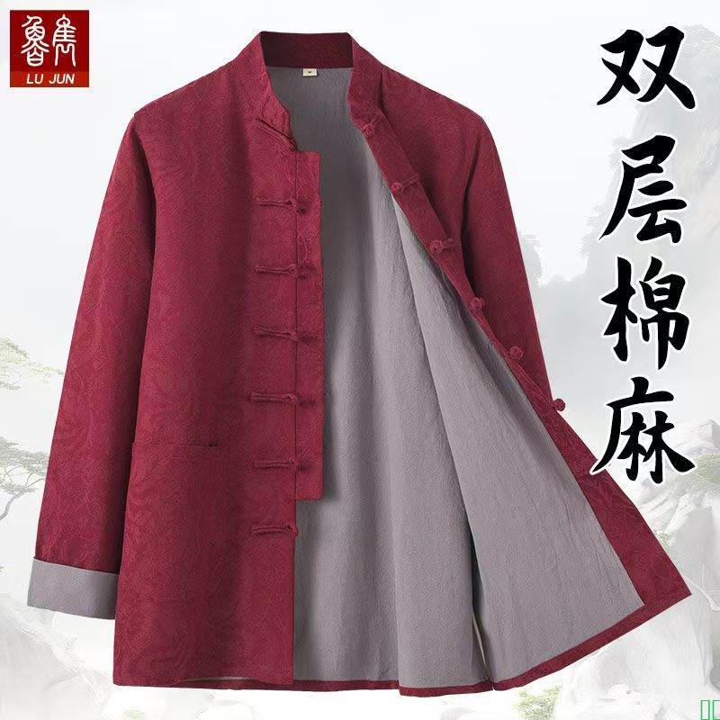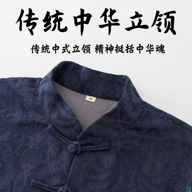 春秋款唐装男青年中国风中老年人提花棉麻上衣中式服装居士服外套