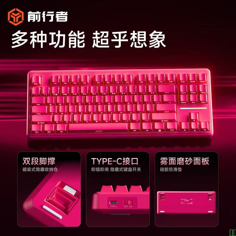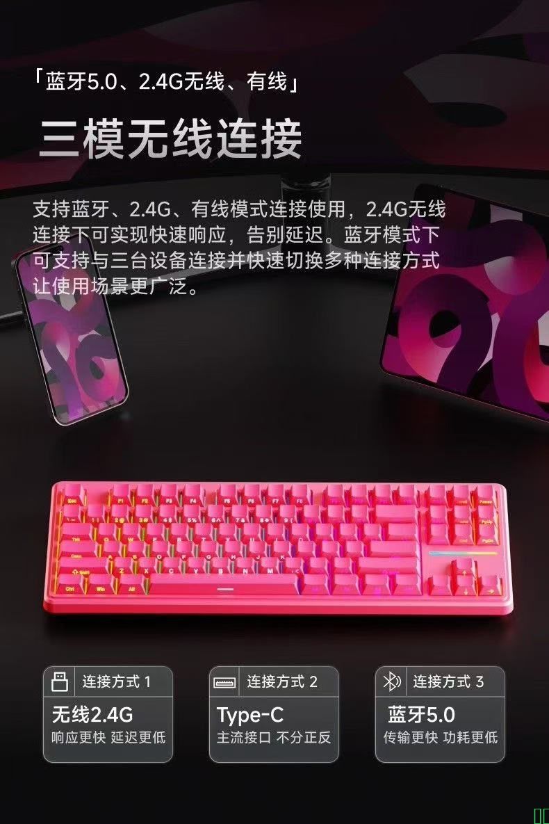 前行者v80无线三模键盘蓝牙侧刻电竞游戏静音办公键盘新款RGB灯效