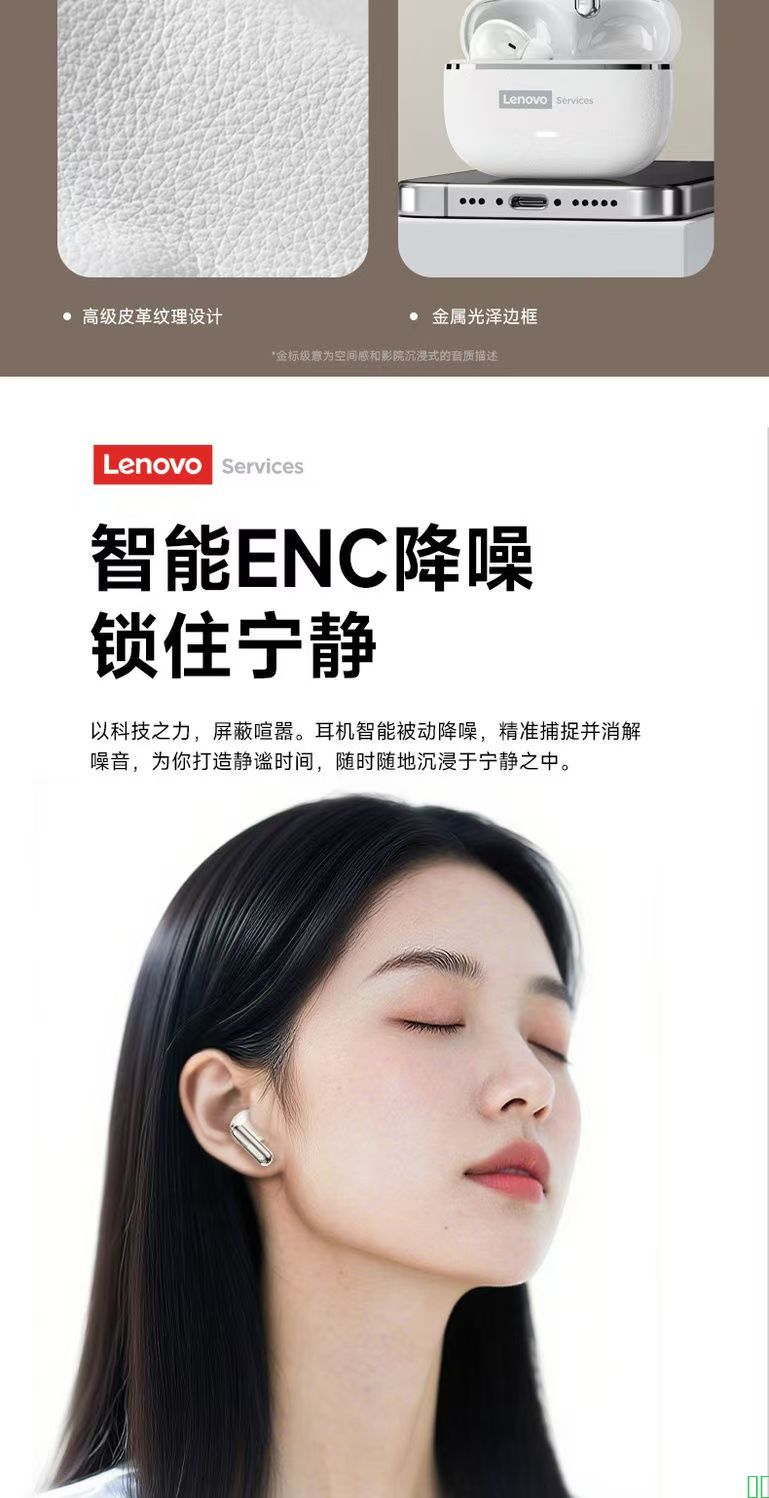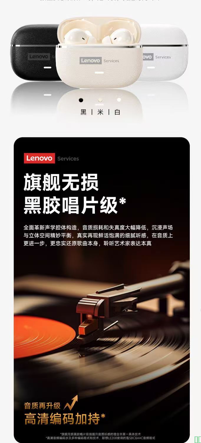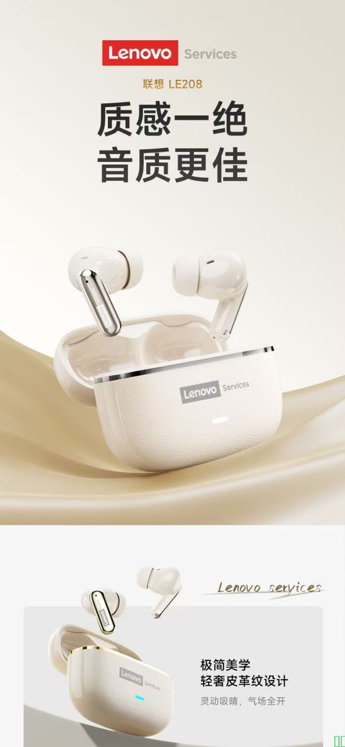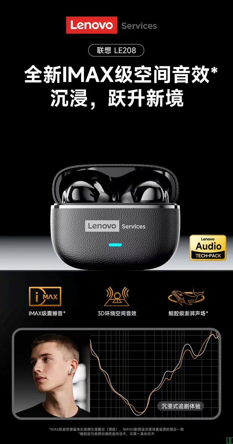 联想蓝牙耳机入耳式无线2025高音质新款降噪运动长续航学生LE208