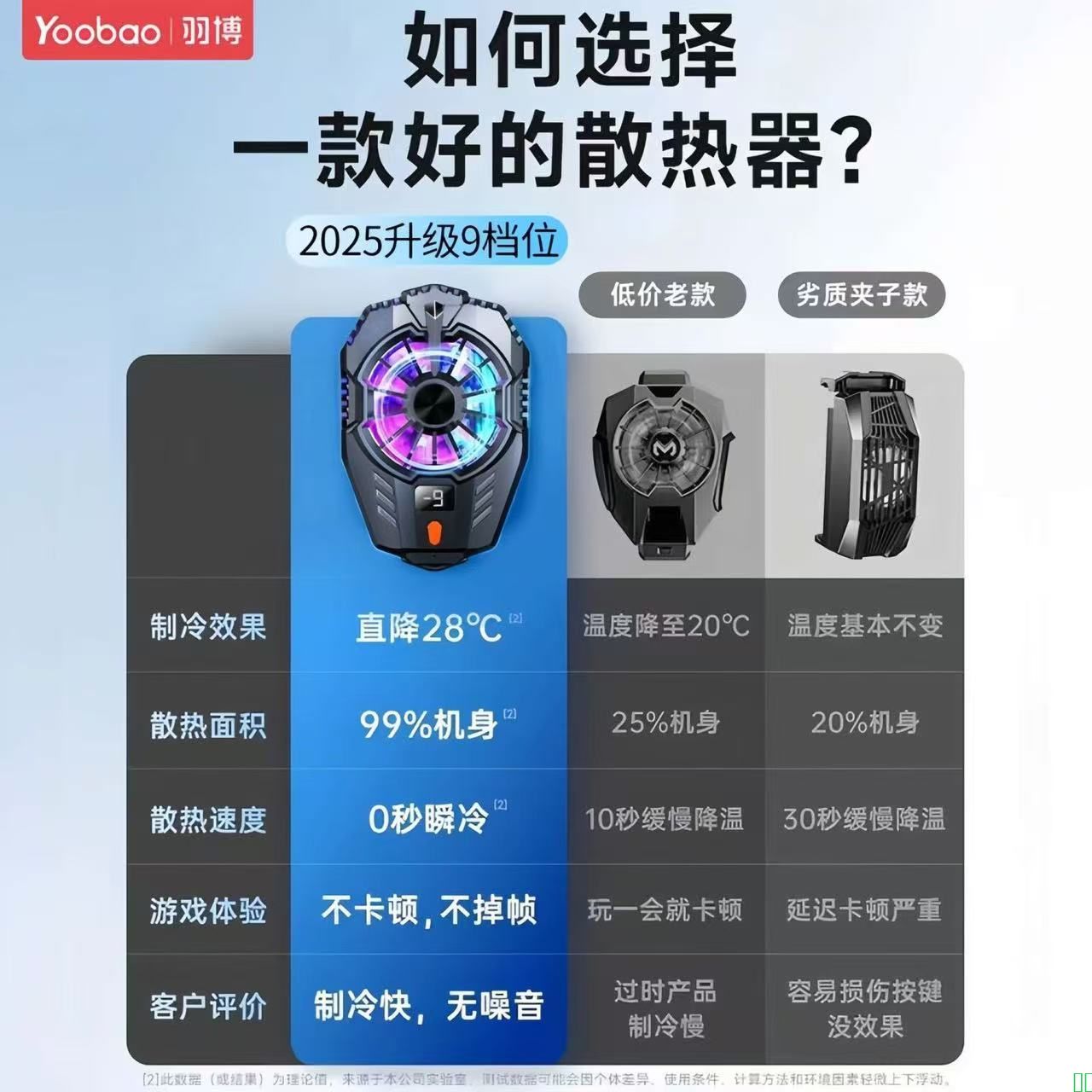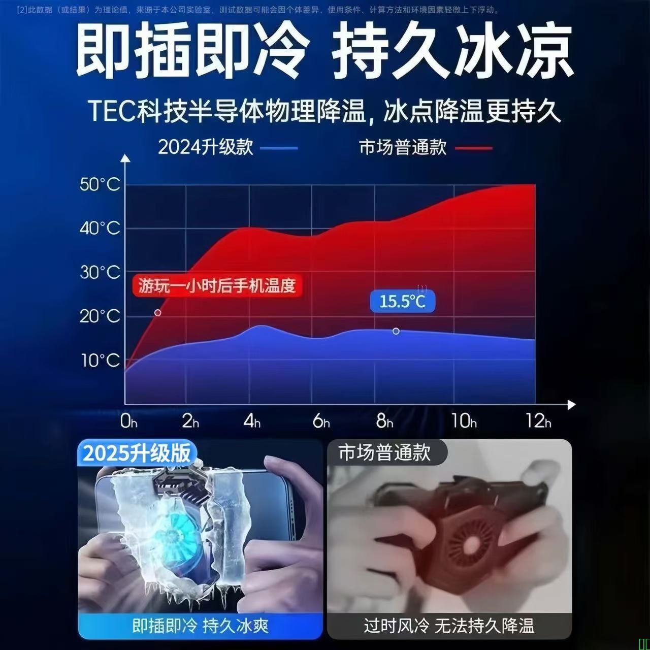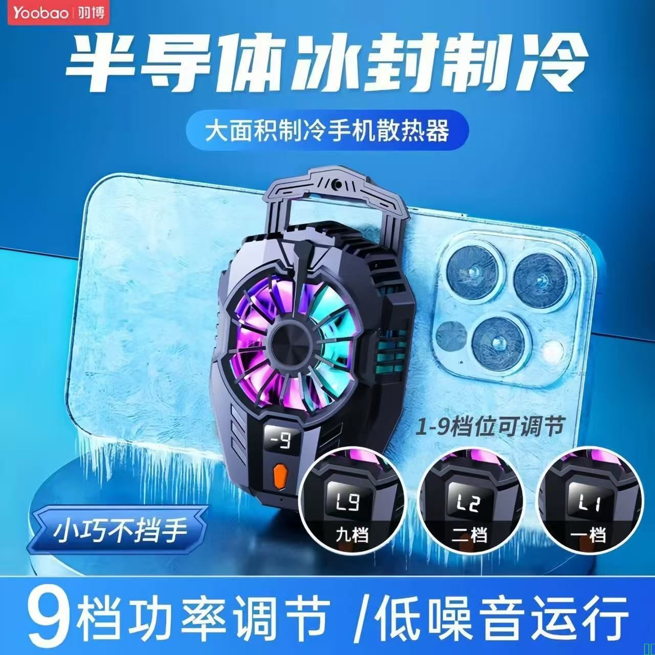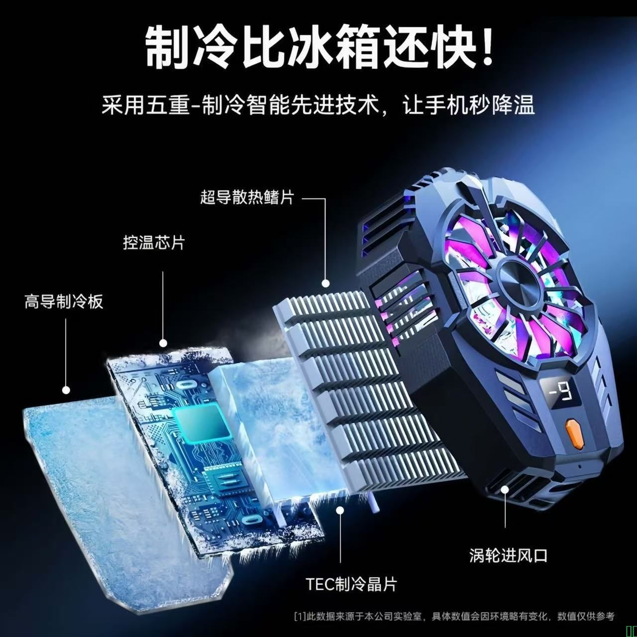九档手机散热器数显控温半导体制冷降温神器黑鲨苹果通用静音背夹