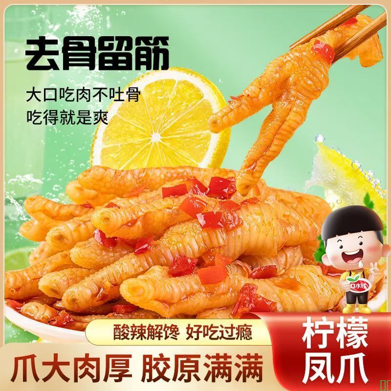 口水娃脱骨凤爪480g酸辣柠檬批发去骨脱骨凤爪解馋小零食冷鲜发货