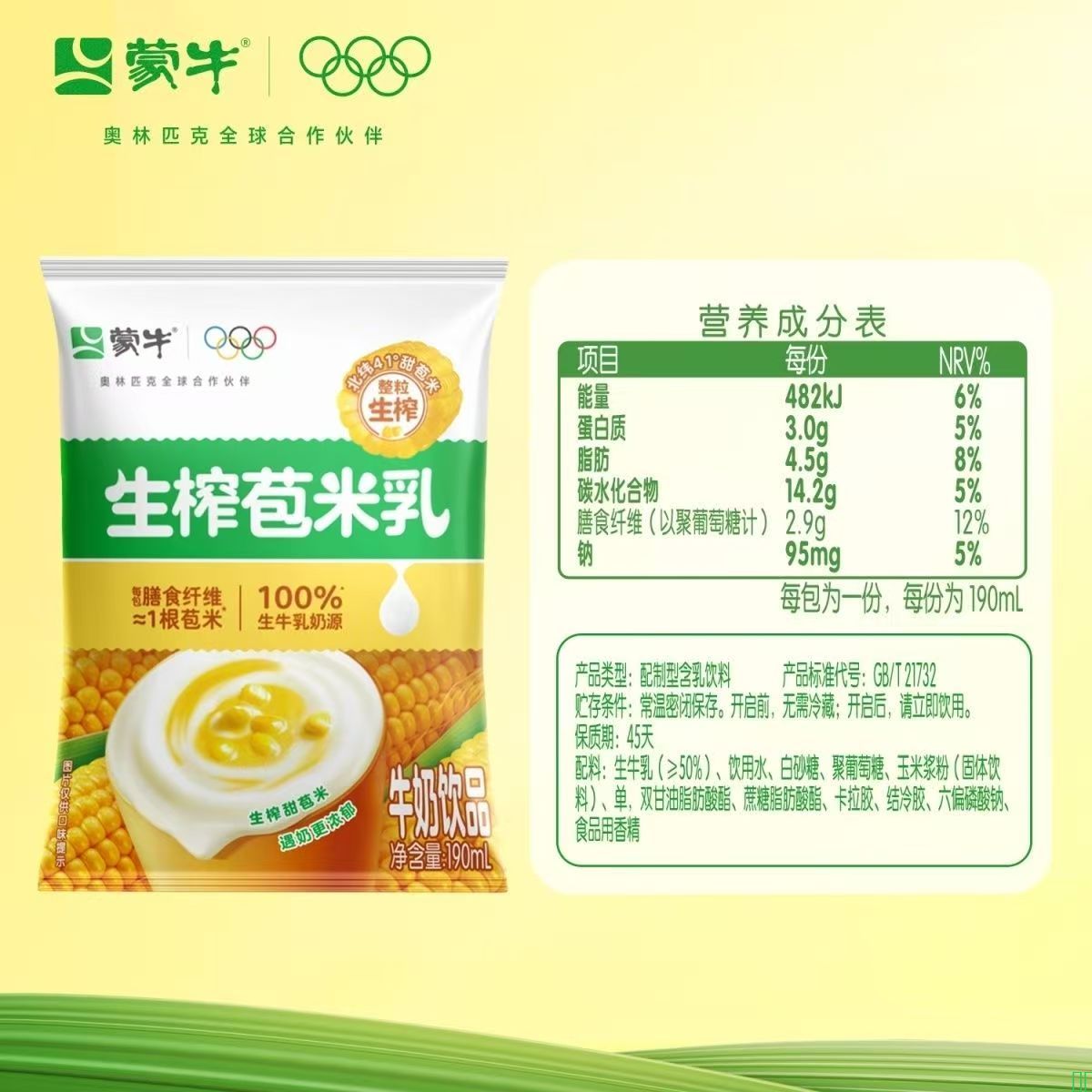 新日期蒙牛生榨苞米乳9月新品190*16现货特价包邮牛奶早餐东北特