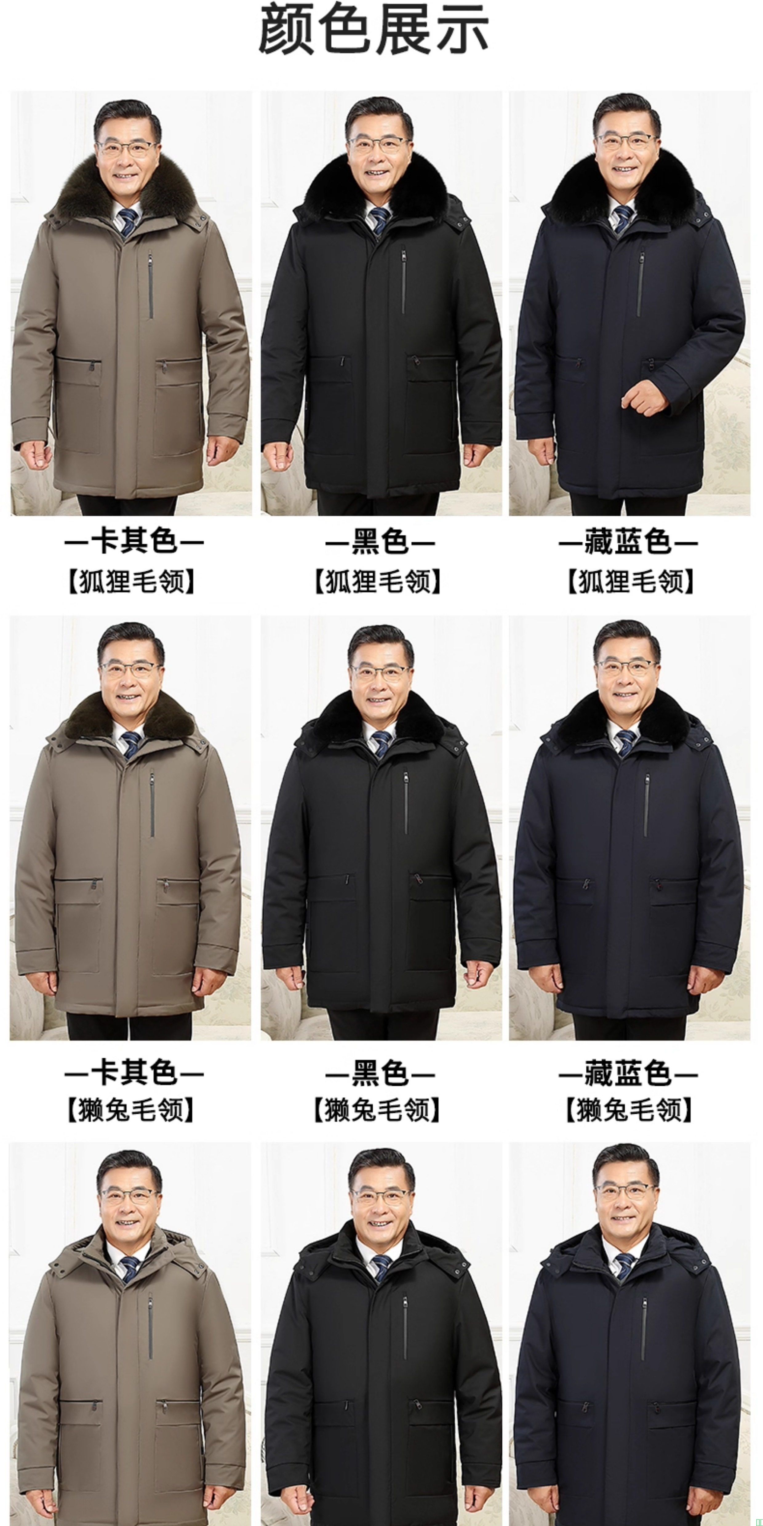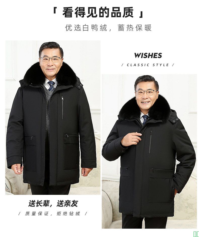 恒源祥集团彩羊鹅绒服中老年羽绒服男加厚中长款活里活面爸爸外套-淘宝网