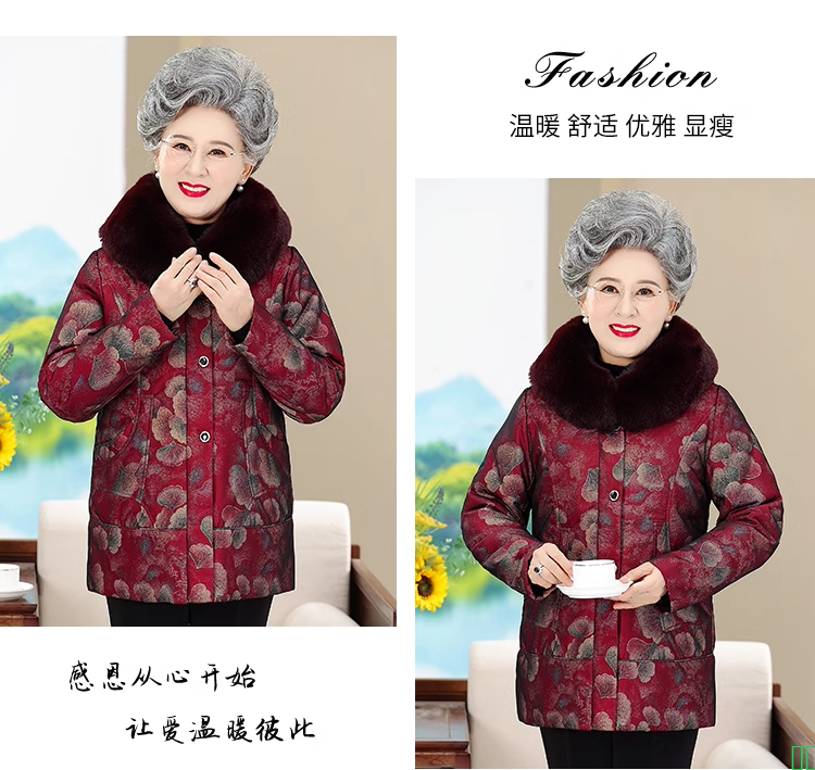 罗蒙老年人白鹅绒老年人羽绒服女外穿冬季奶奶大码加厚老太太外套-淘宝网