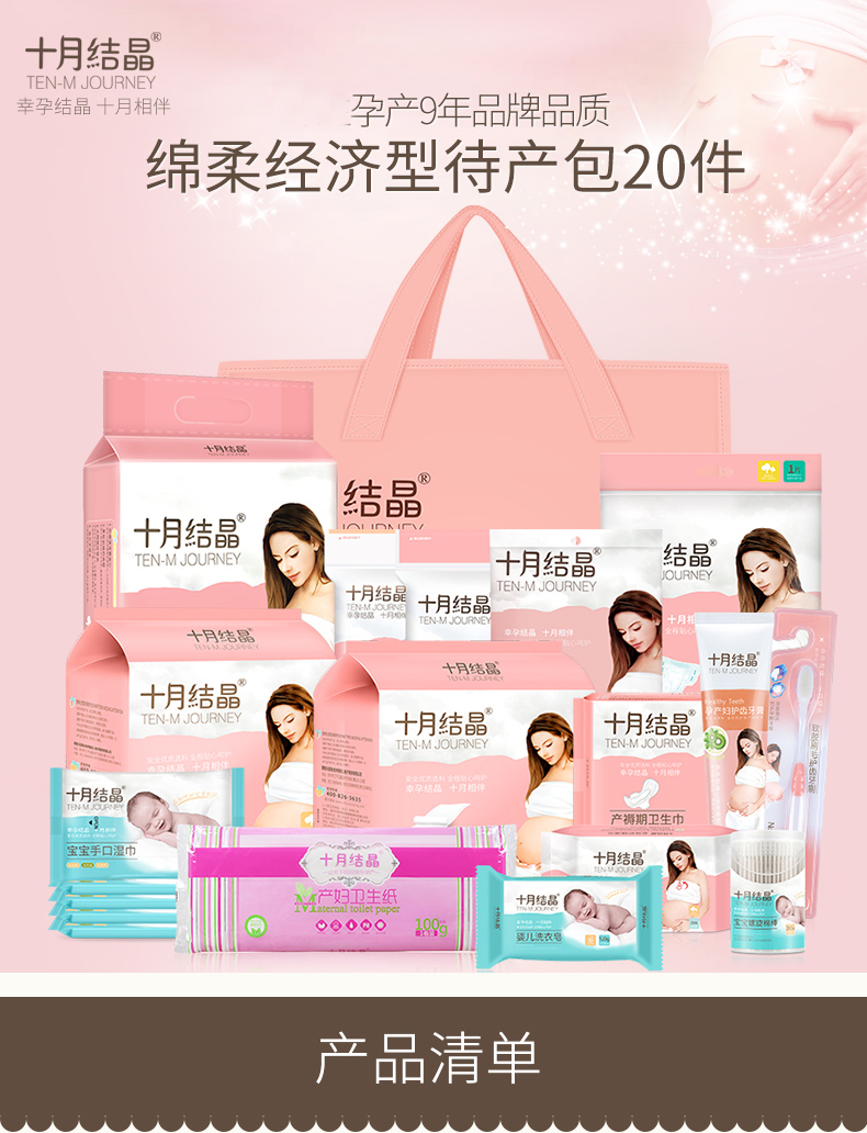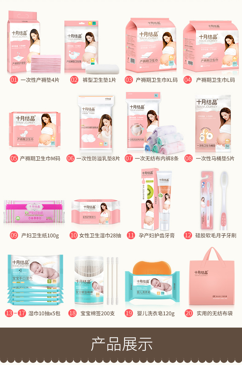 十月结晶 孕妇待产包母婴全套秋冬季产妇入院包产褥期专用卫生巾月子牙刷牙膏入院必备用品套装待产护理 基础款16件套