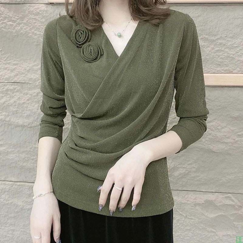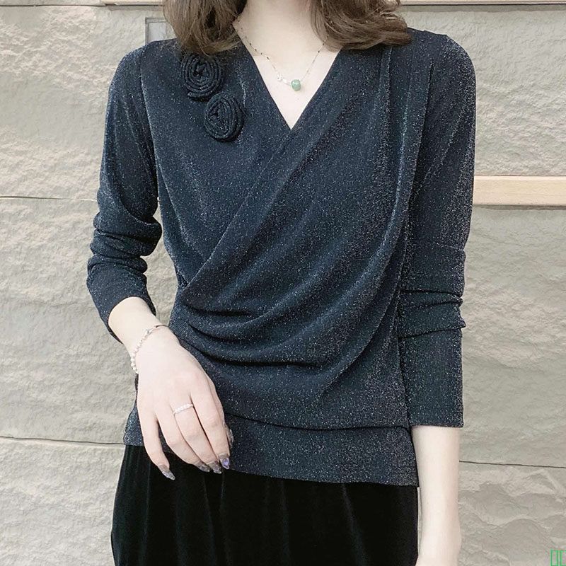 软糯休闲花边圆领打底衫女新款洋气2025年秋冬毛衣长袖针织衫宽松