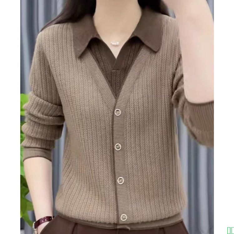 大码女装胖mm秋装新款打底衫假两件毛衣宽松遮肚上衣显瘦遮肉冬装