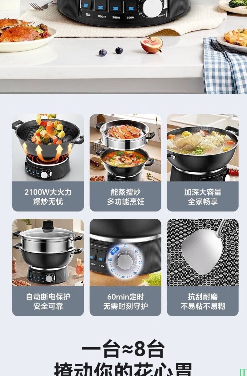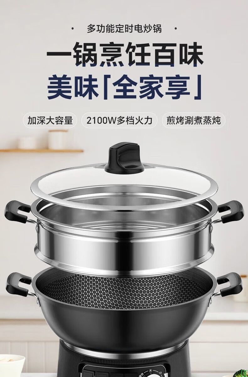 SUOPQER苏泊电炒锅电蒸锅一体电煮锅多功能料理锅电火锅专用锅大容量多功能锅不锈钢蒸笼炖蒸煮涮炒煎一体_【特厚按键款】免开锅+蜂窝不粘锅+精品礼包_26cm无笼【2.6L适用2-3人】【图片_价格_
