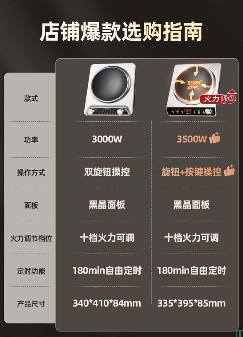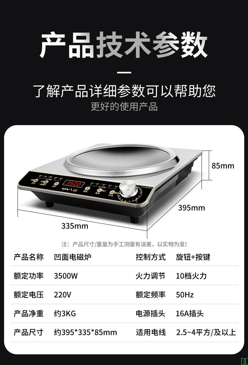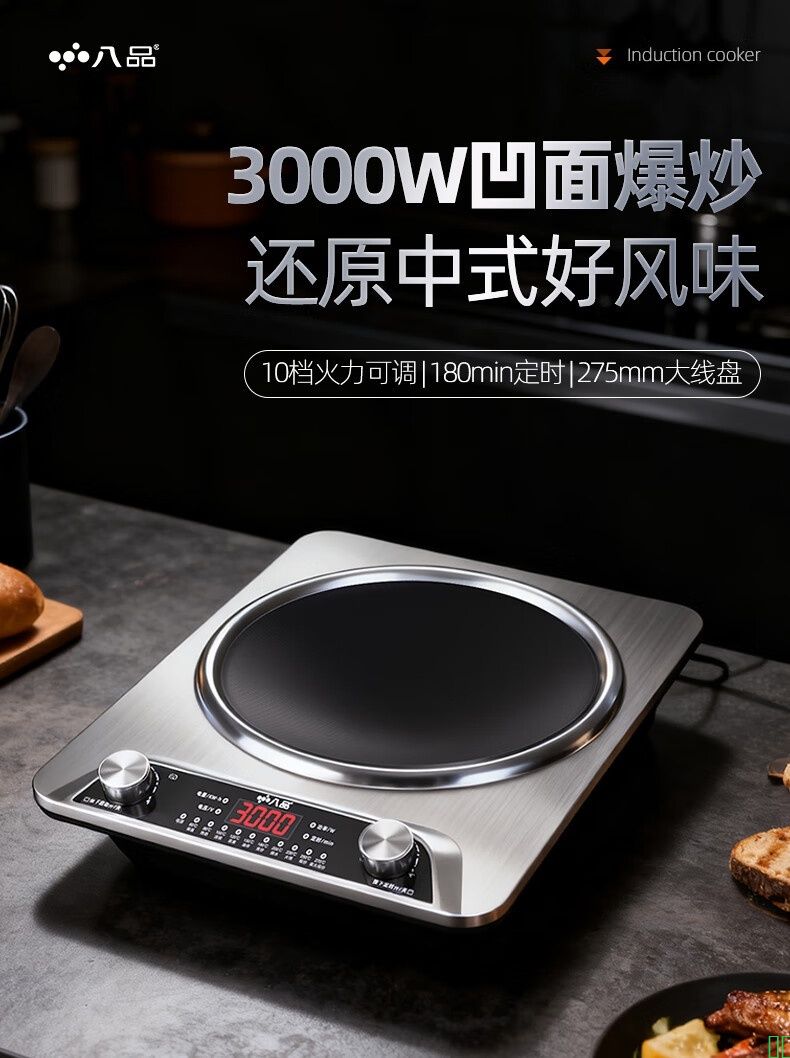 八品【人气5万+】凹面电磁炉家用电炒锅套装炒菜锅大功率电磁灶十档大火力猛火爆炒16A插头带转换插_【3000W大火力】双旋钮款丨配不粘锅【图片_价格_品牌_报价】