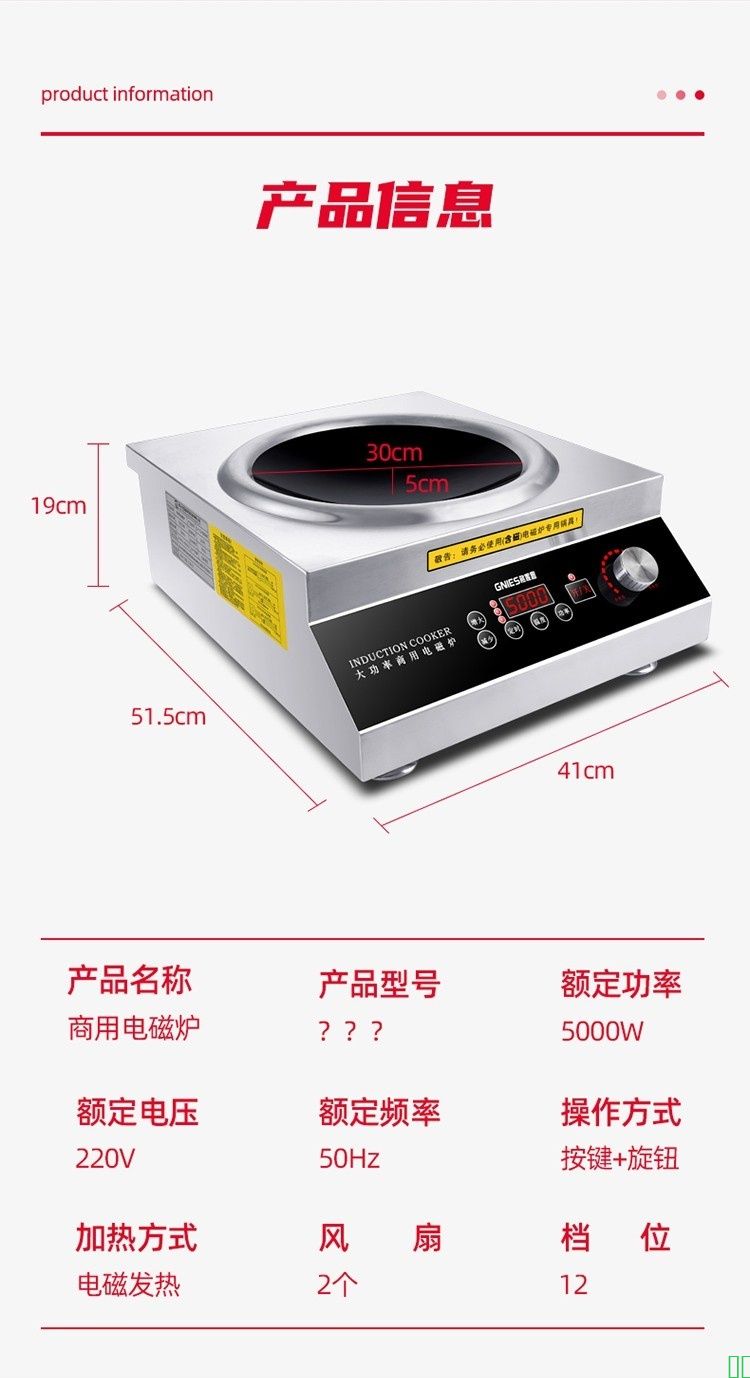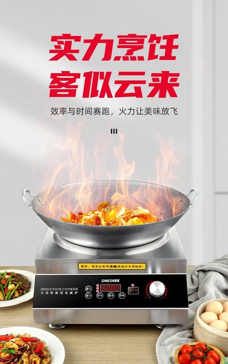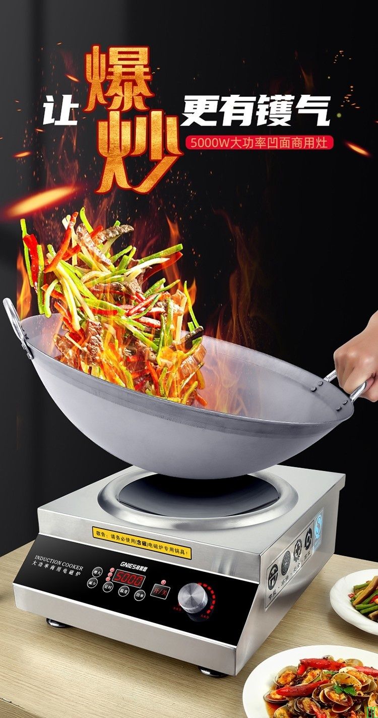 格妮思_GNIES_商用电磁炉5000w凹面大功率饭店幼儿园食堂酒店工厂炒菜6kw电磁灶大火力电炒锅_220V常规款5000W+45铁锅【图片_价格_品牌_报价】