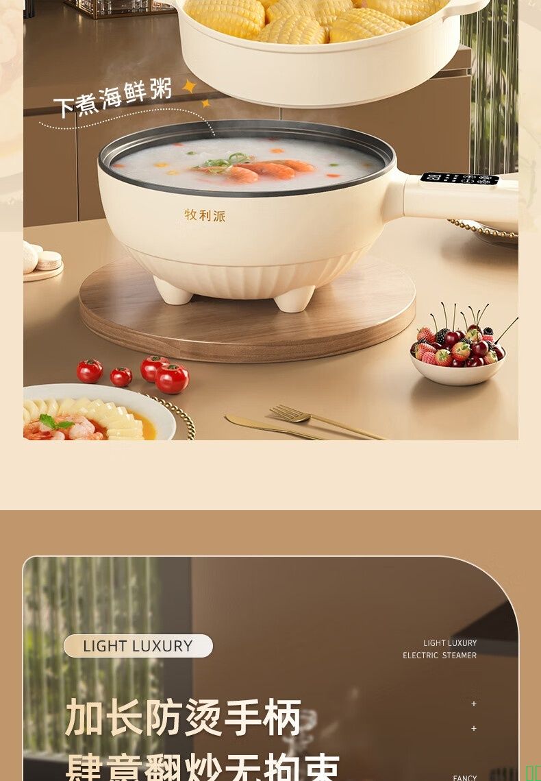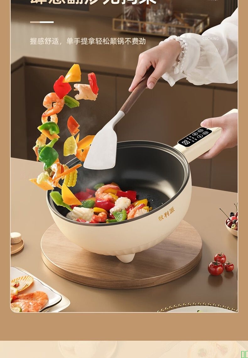 牧利派电炒锅炒菜电煮锅电火锅多功能家用电热锅多用途锅不粘锅一锅多用蒸煮煎炒一体锅小家电料理锅插电_米白色-电炒锅不粘锅_带木铲【配加长电线】_特厚款3.5升_机械款-无蒸笼_1-3人【图片_价格_品牌