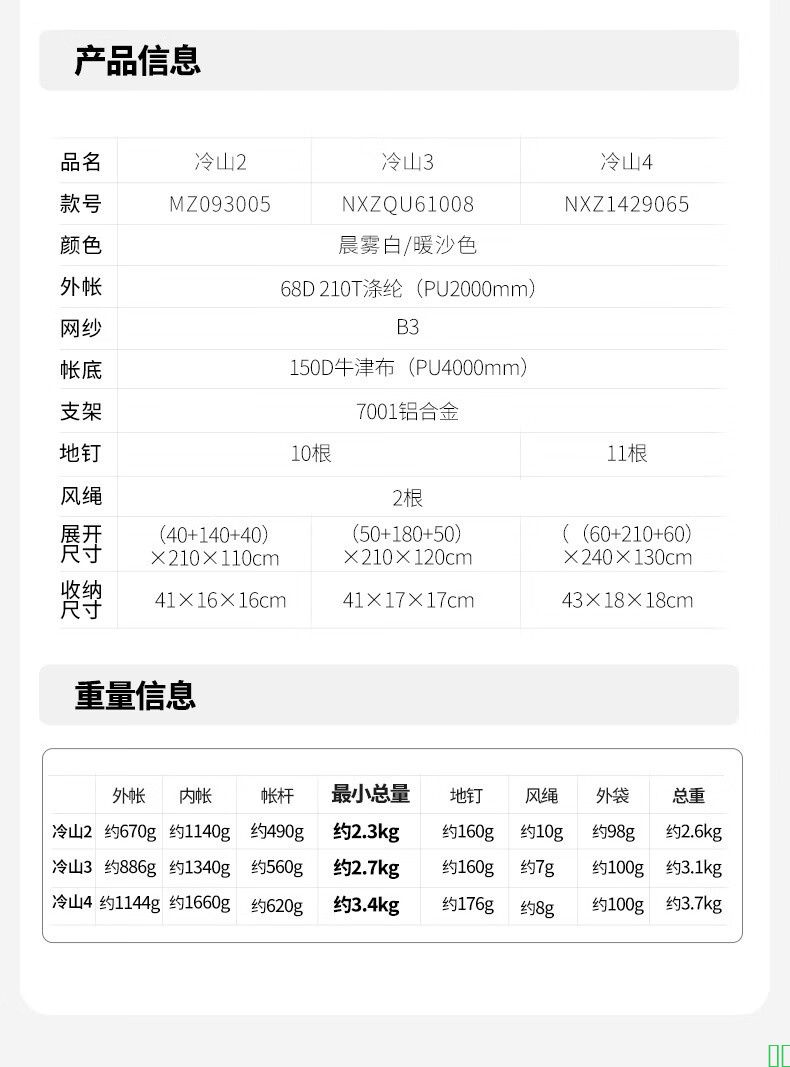 【牧高笛MZ093005】牧高笛(MOBIGARDEN)冷山2帐篷_户外露营徒步防风防雨双人帐篷_MZ093005_晨雾白A【行情_报价_价格_评测】