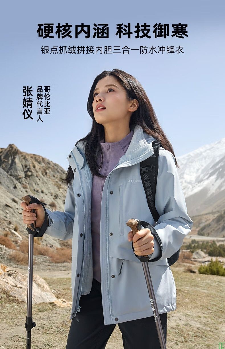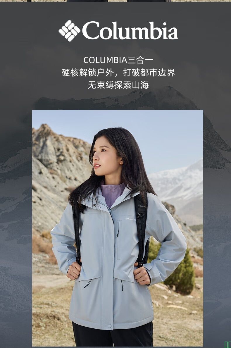 Columbia张婧仪同款哥伦比亚户外25秋冬女抓绒内胆三合一防水冲锋衣XR2855_031_卷云灰_L(165_88A)【图片_价格_品牌_报价】