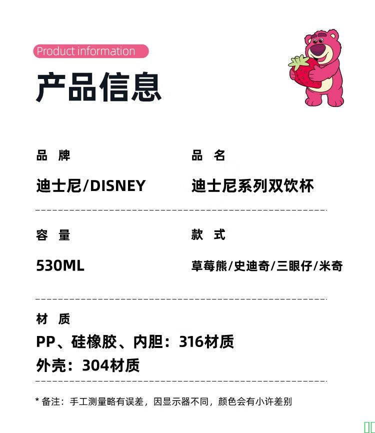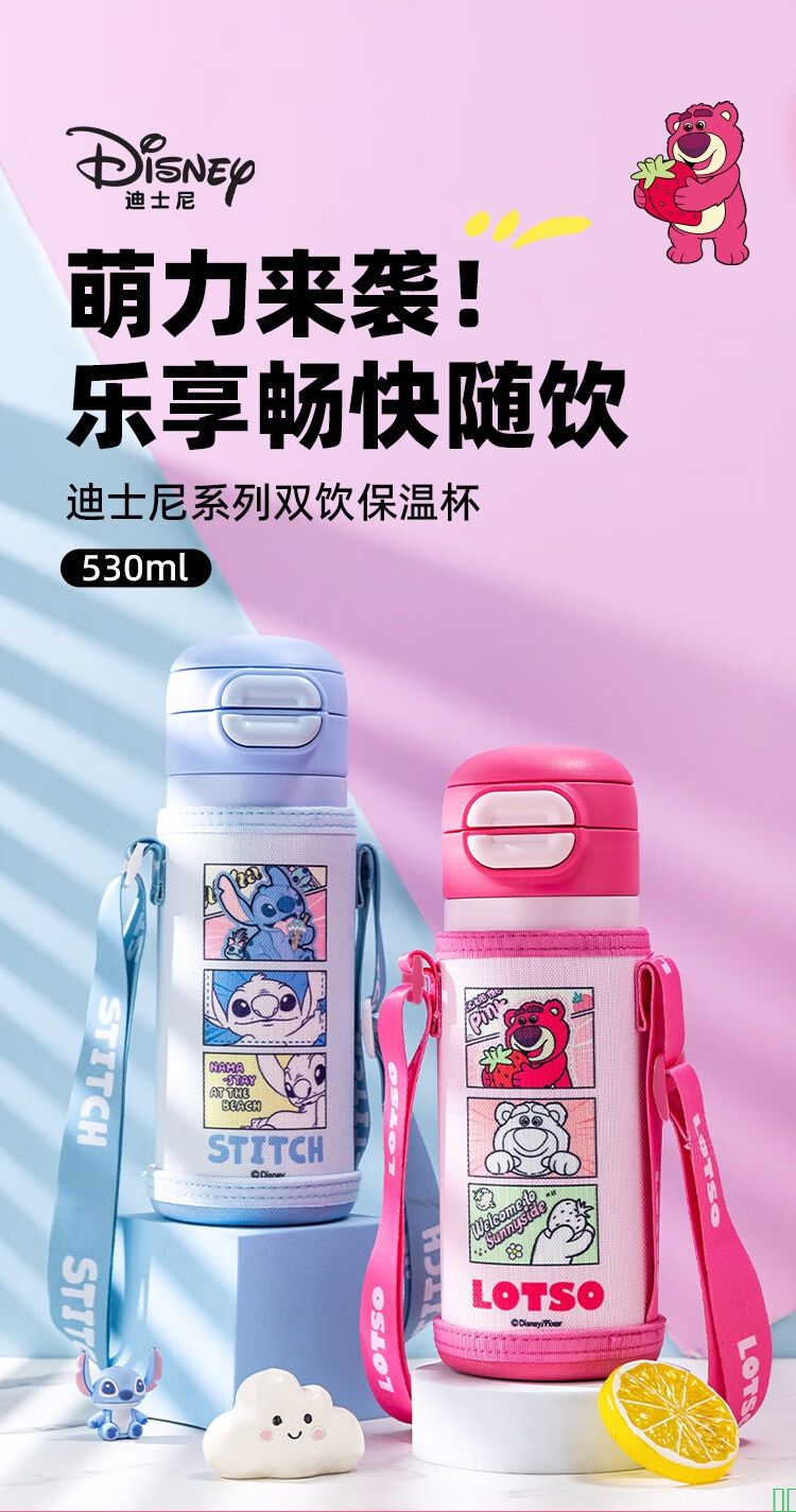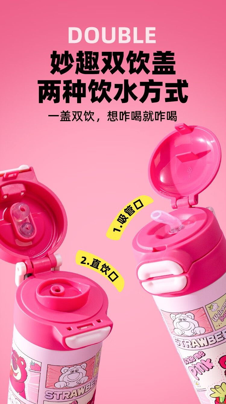 迪士尼(Disney)儿童水杯学生保温杯直饮杯不锈钢杯子大容量运动水杯随手杯礼物_草莓熊_480ml_【双饮杯】【图片_价格_品牌_报价