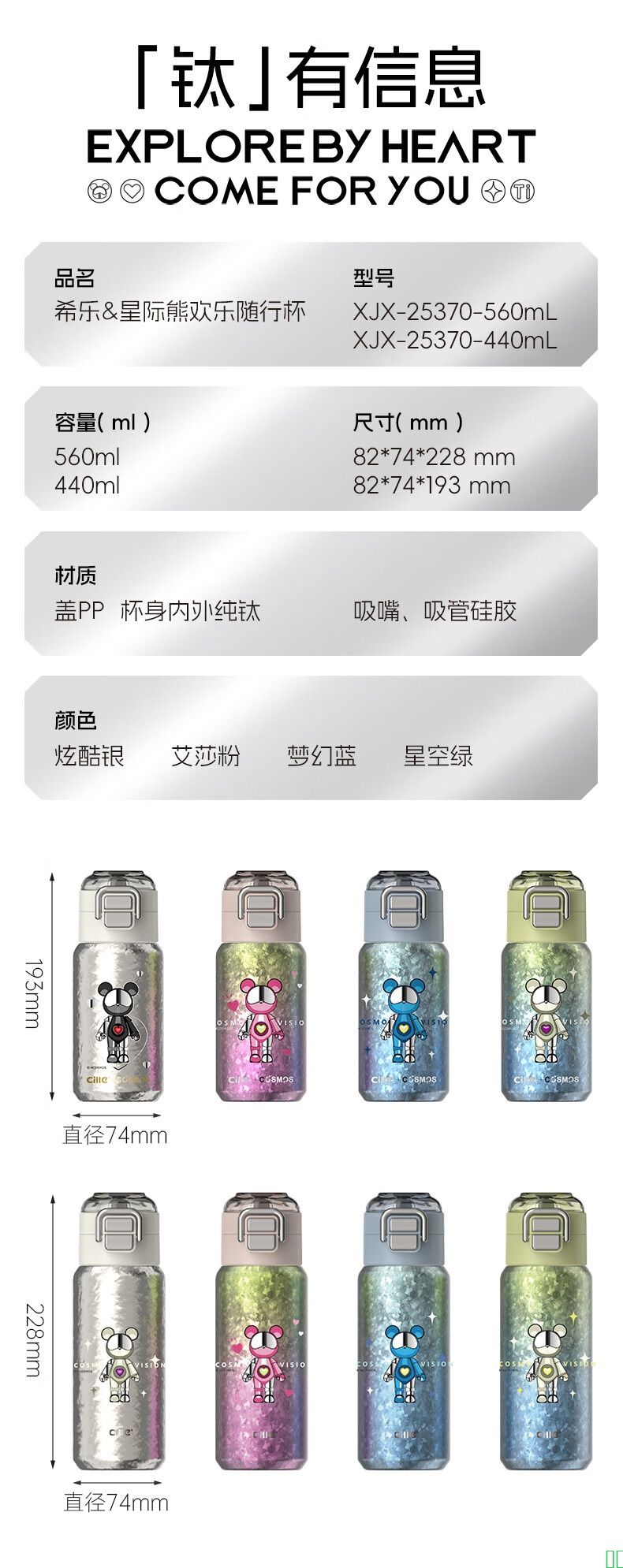 希乐(cille)星际熊纯钛儿童保温杯高颜值男女学生大容量吸管水杯子生日礼物_艾莎粉【纯钛_双饮】440ml【图片_价格_品牌_报价】