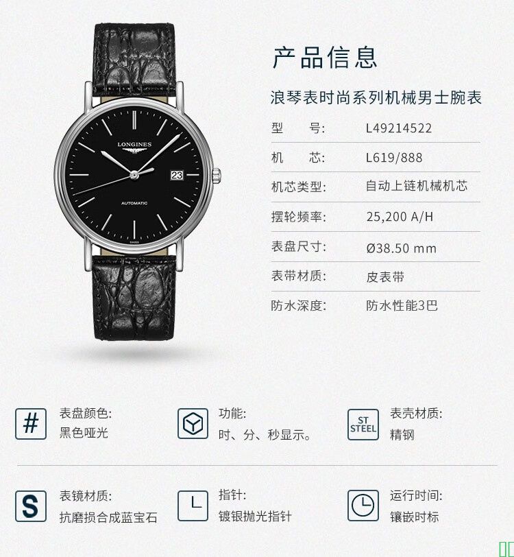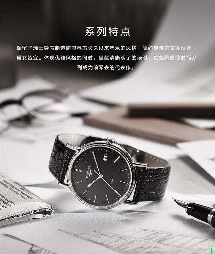 浪琴(LONGINES)瑞士手表_时尚系列_男士皮带机械表_L49214522新年礼物_黑色哑光38.5mm【图片_价格_品牌_报价】