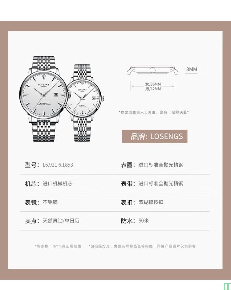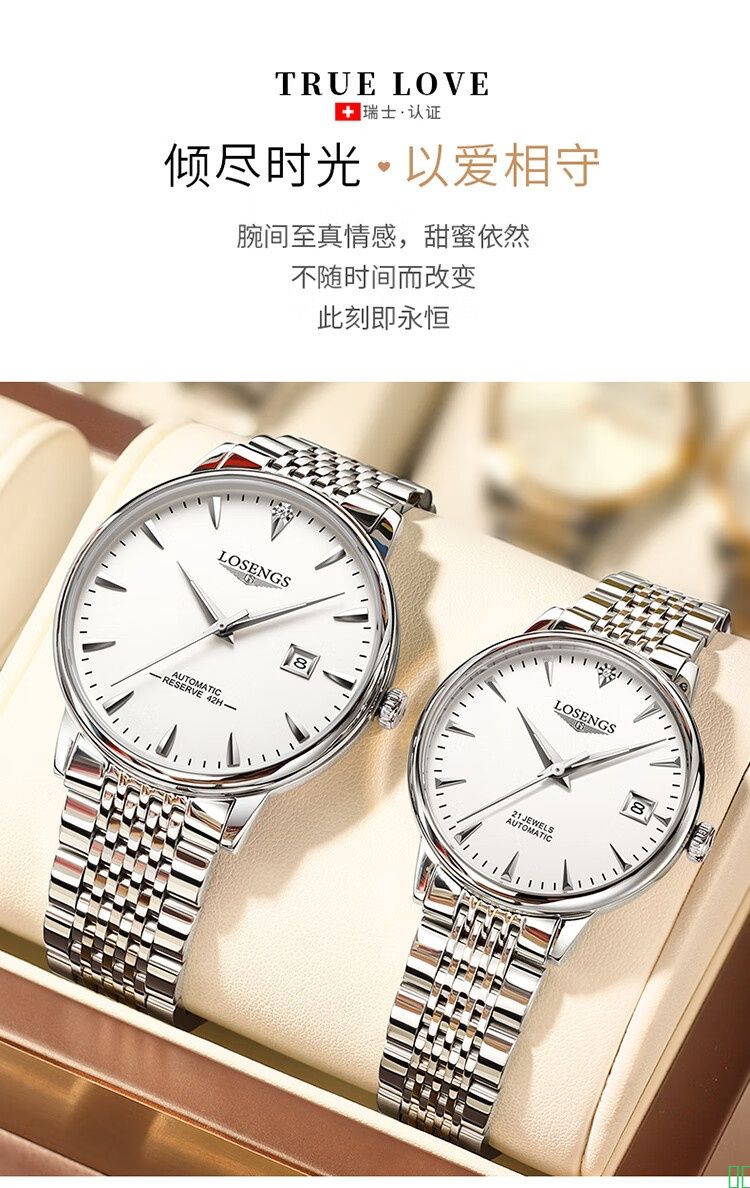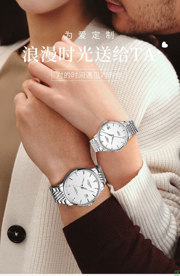 瑞士名牌浪琴情侣机械手表一对简约真钻时尚潮流防水夜光男女专用_本色白面_钢带_女款【图片_价格_品牌_报价】
