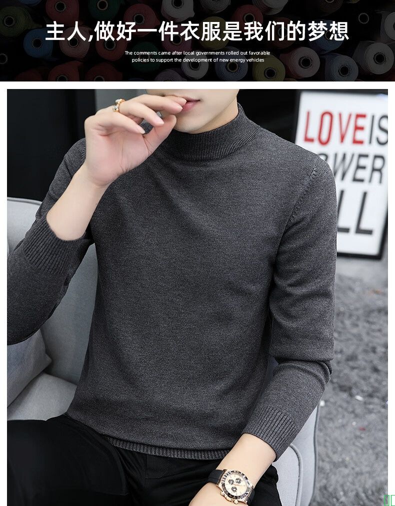 宾色半高领毛衣男冬款纯色休闲加绒加厚保暖打底衫修身秋冬针织衫男装_【半高领】深灰色_XL_【合适120-140斤】【图片_价格_品牌_报价】
