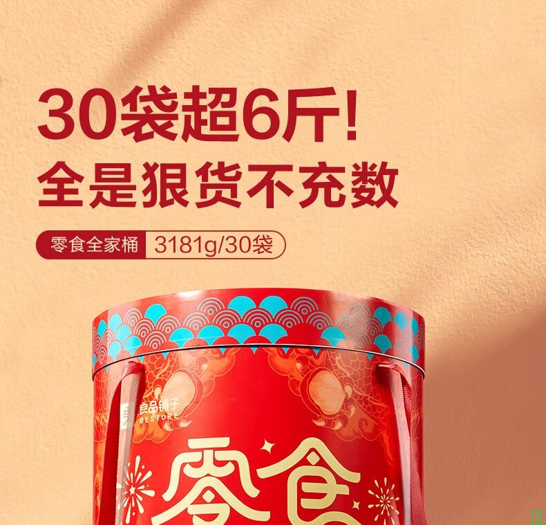 三只松鼠 肩扛大零食巨型坚果零食大礼包3195g 30包抖音一箱零食猪饲料送女友年货礼盒 混合口味