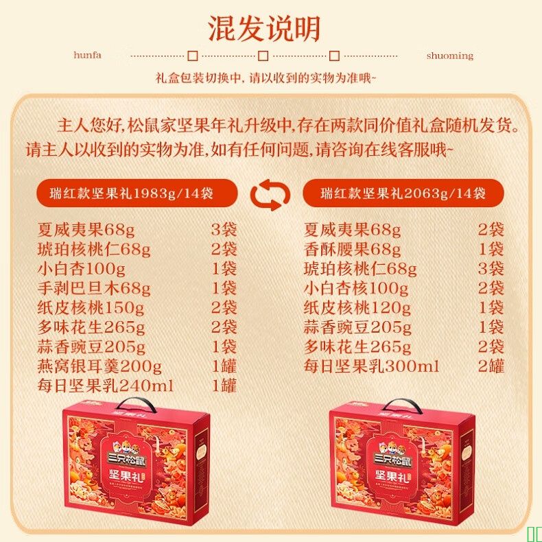 【三只松鼠三只松鼠坚果礼盒2063g_14袋】三只松鼠坚果礼盒2063g_零食大礼包干果炒货送礼长辈新春节过年货企业团购【行情_报价_价格_评测】
