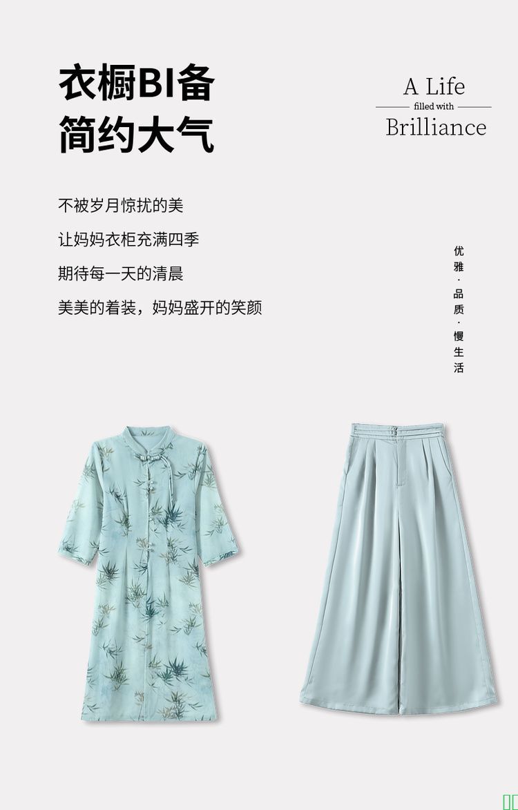 中年妈妈夏装中长款外套阔腿裤套装春夏季七分袖国风上衣女两件套