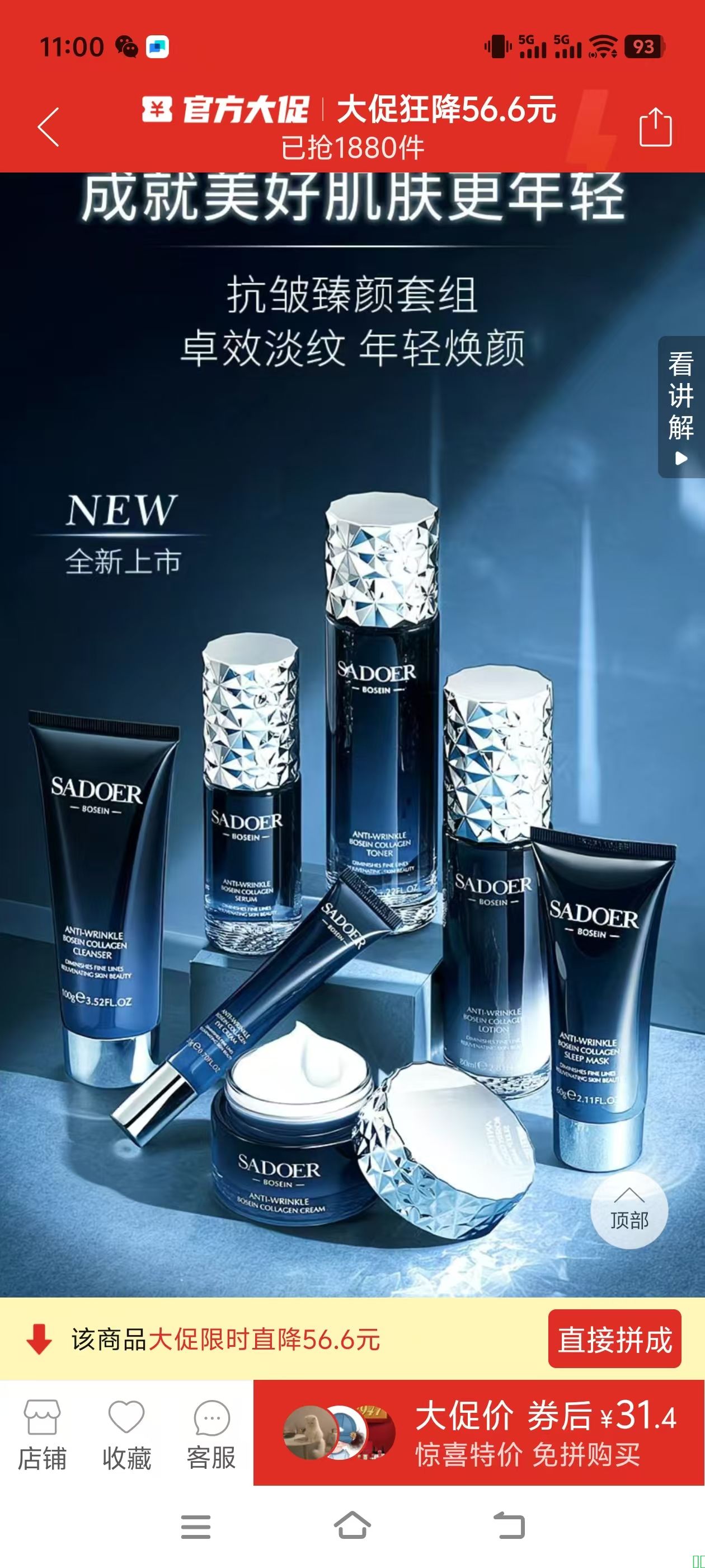 容院线专用玻色因胶原礼盒护肤套装精华补水保湿七件套抗皱淡纹