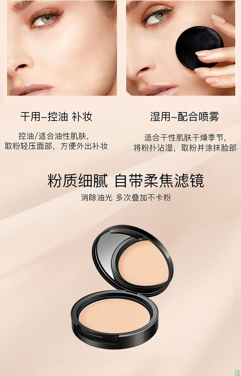 粉饼控油定妆补妆干湿两用提亮柔焦蜜粉饼遮瑕毛孔防水修容不卡粉