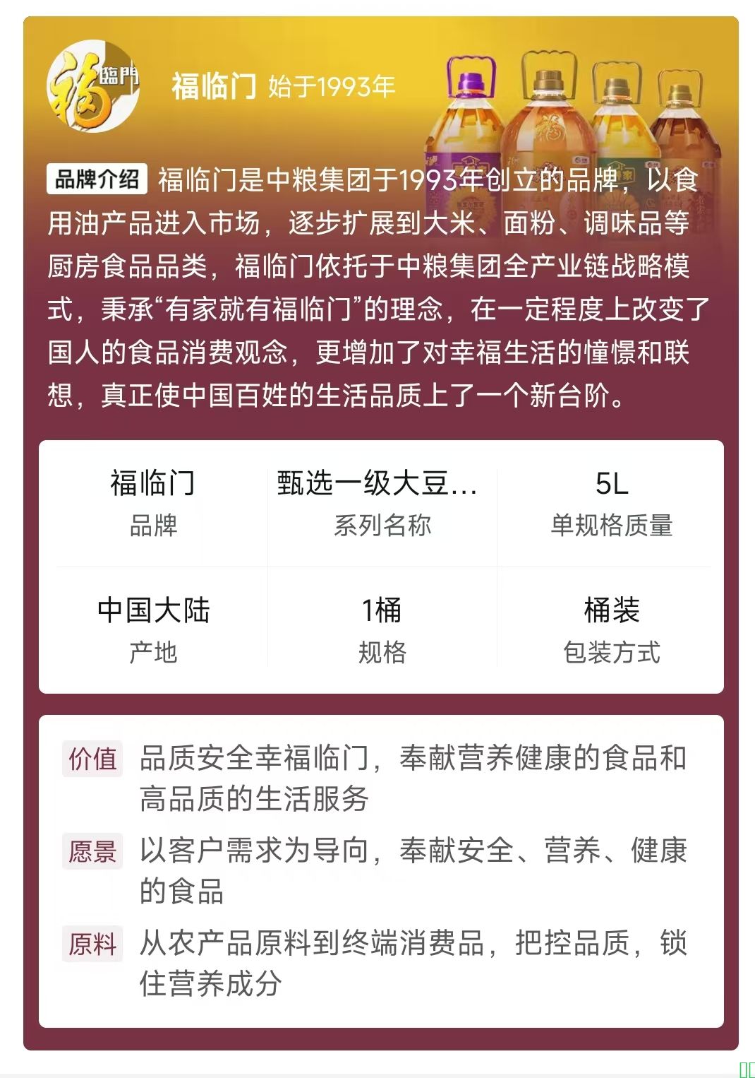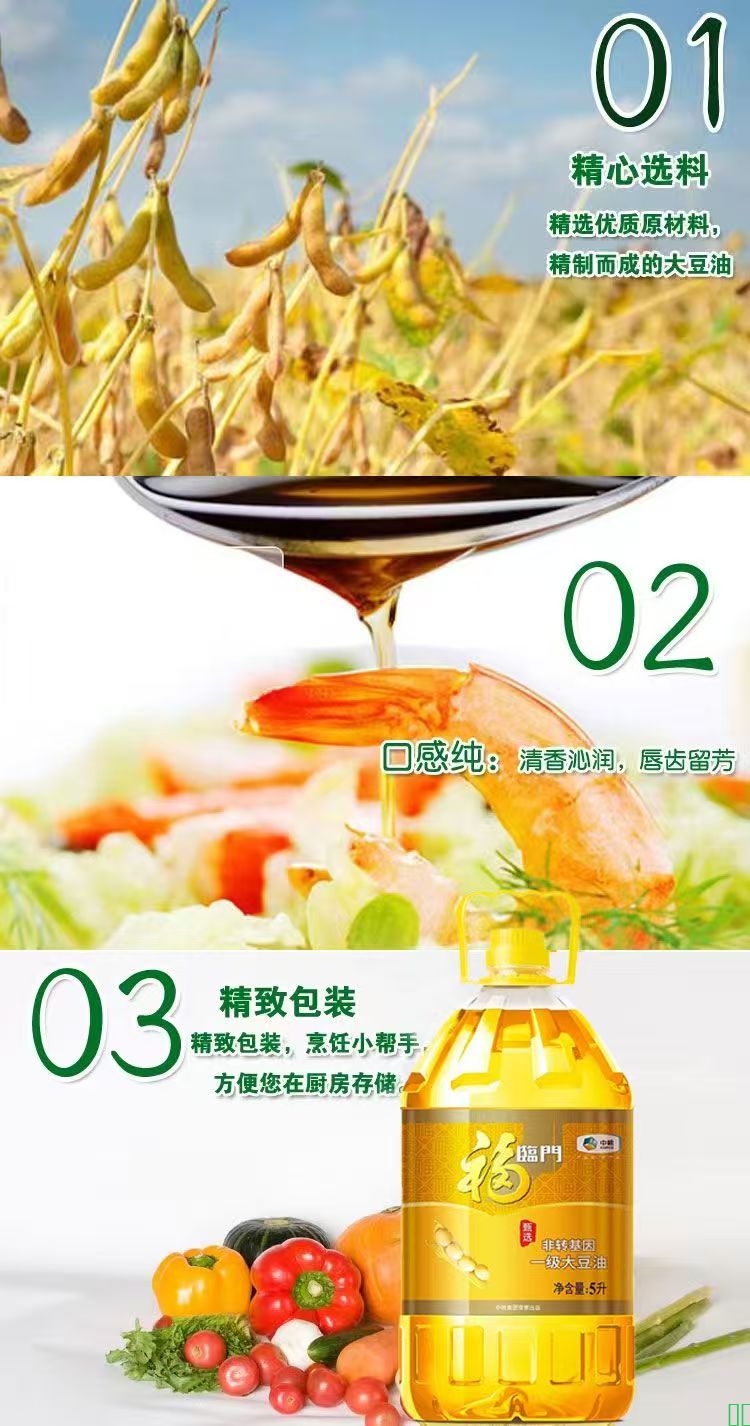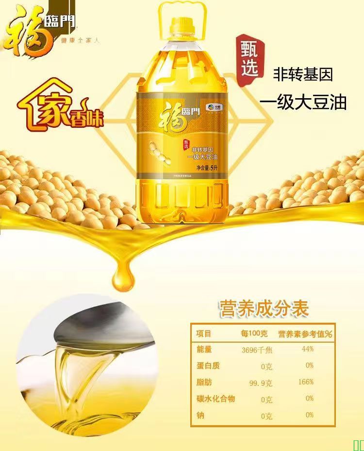 福临门甄选非转基因一级大豆油5升桶装食用油家用油好日期批发价