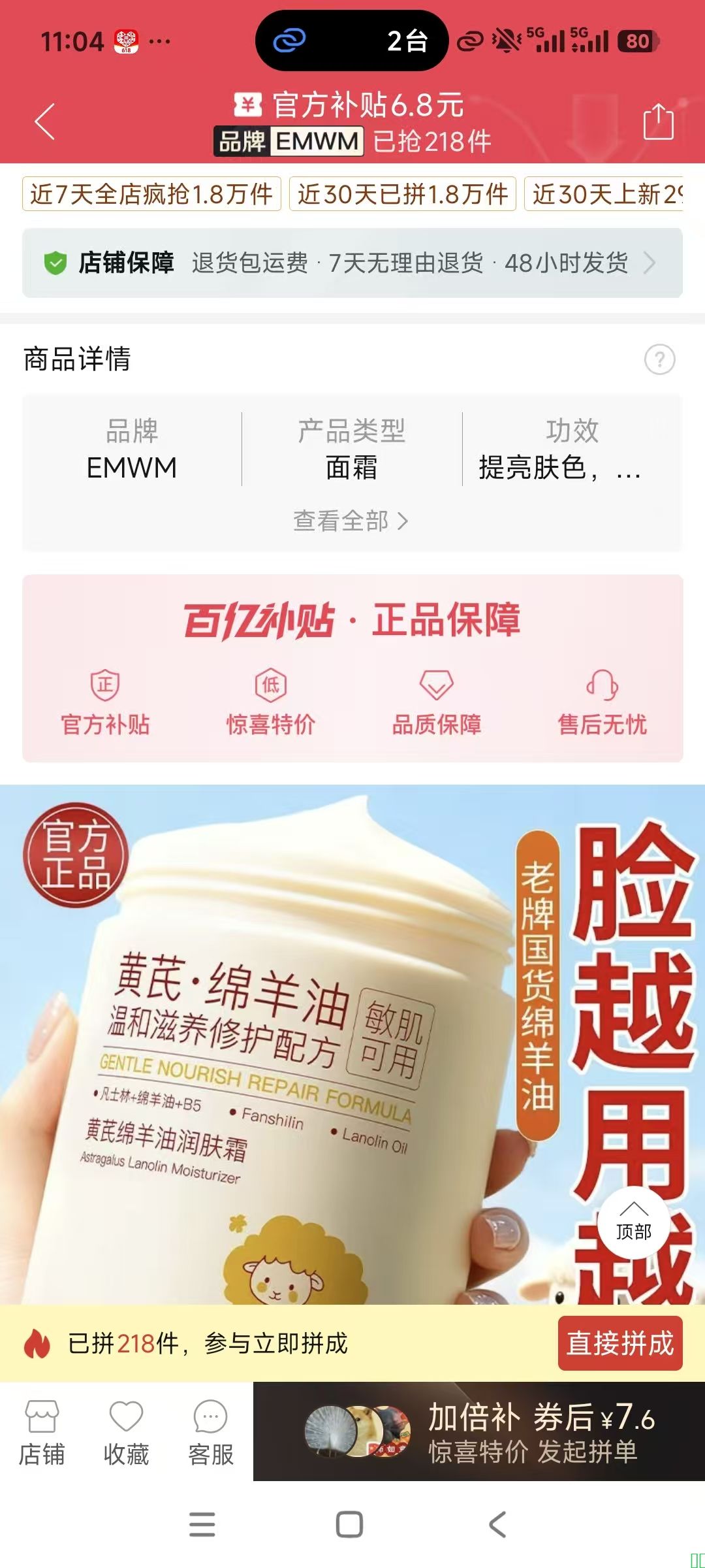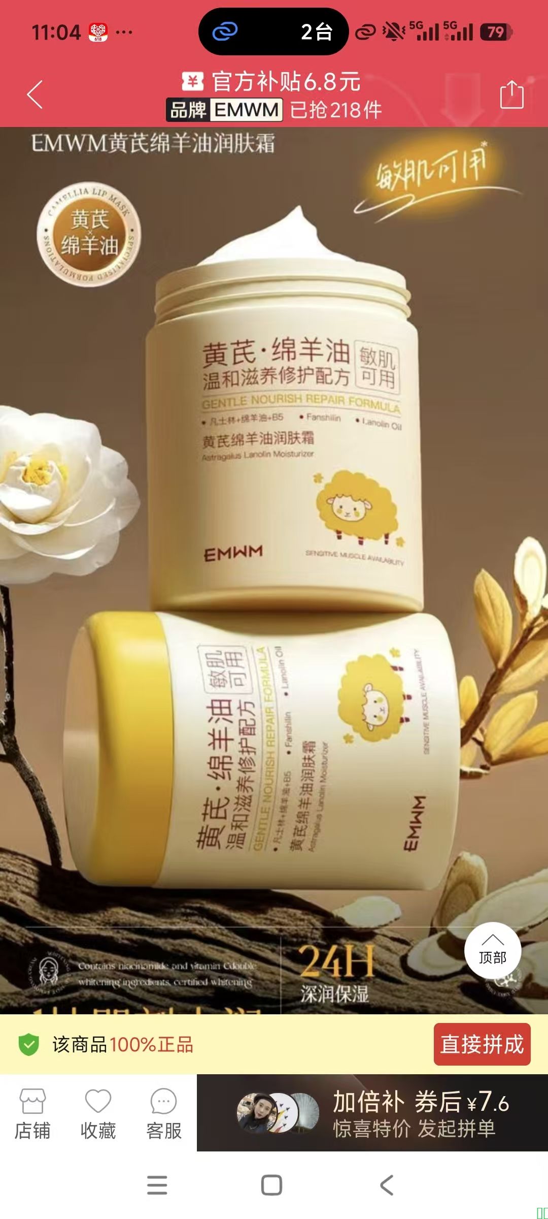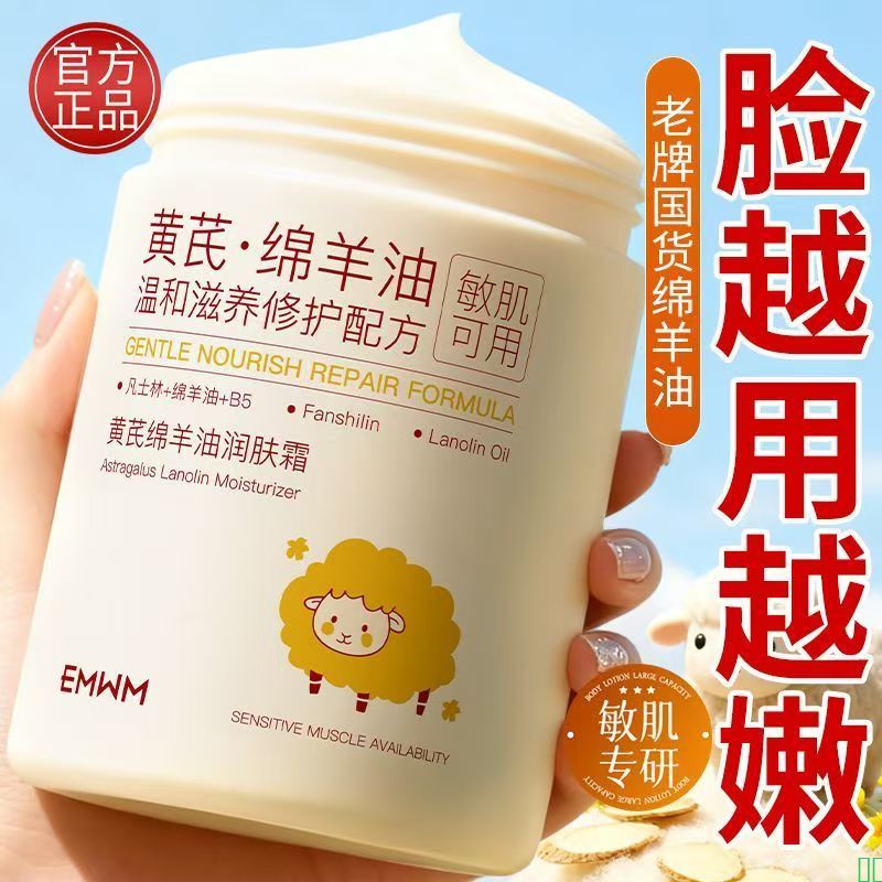 EMWM凡士林绵羊油面霜黄芪补水保湿嫩白滋养防干裂粗糙宝宝润肤霜