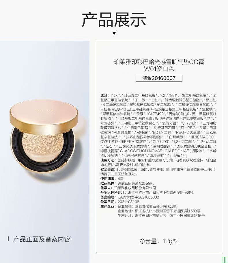 珀莱雅化妆品气垫cc霜粉底液遮瑕裸妆持久不脱妆bb霜保湿