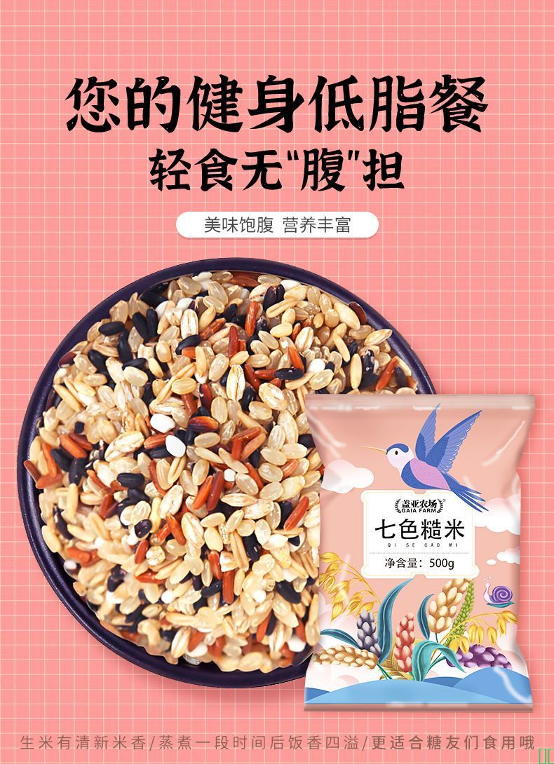 盖亚农场七色糙米500g袋装粗粮低脂饱腹五谷杂粮主食粗粮代餐糙米