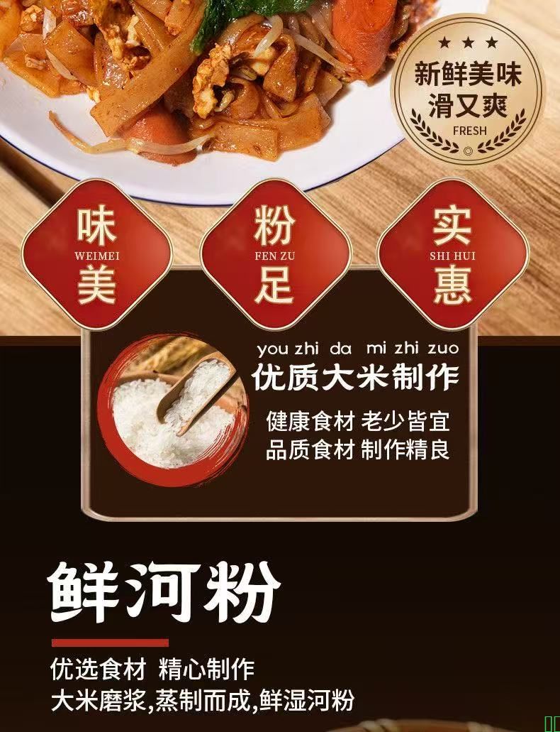 年辉正宗广东新鲜湿河粉开袋即用家庭装早餐炒河粉老友粉食材整箱