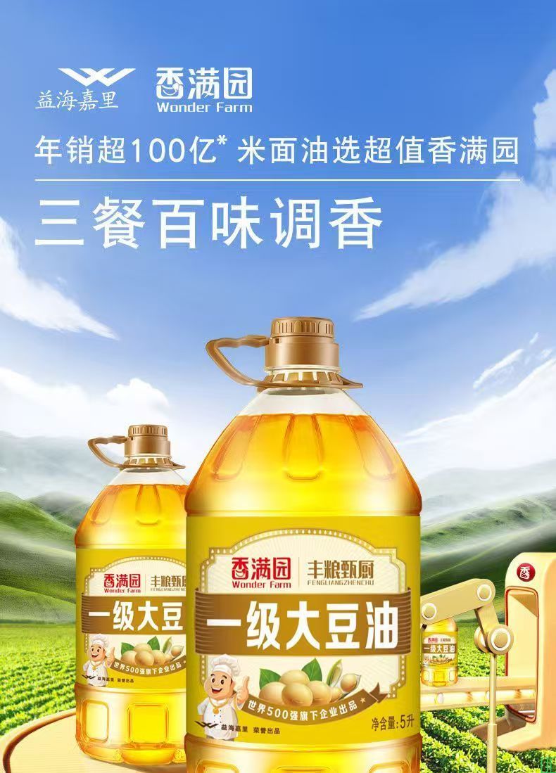 香满园丰粮甄厨联名款一级大豆油5L*4桶整箱摆摊商用餐饮食用油