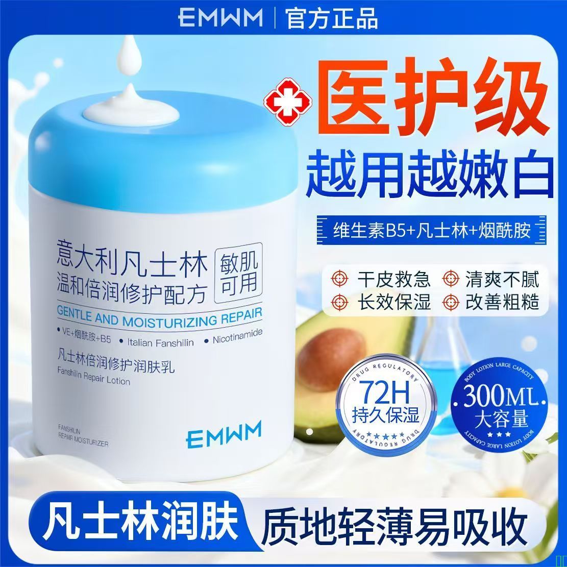 EMWM凡士林绵羊油面霜黄芪补水保湿嫩白滋养防干裂粗糙宝宝润肤霜