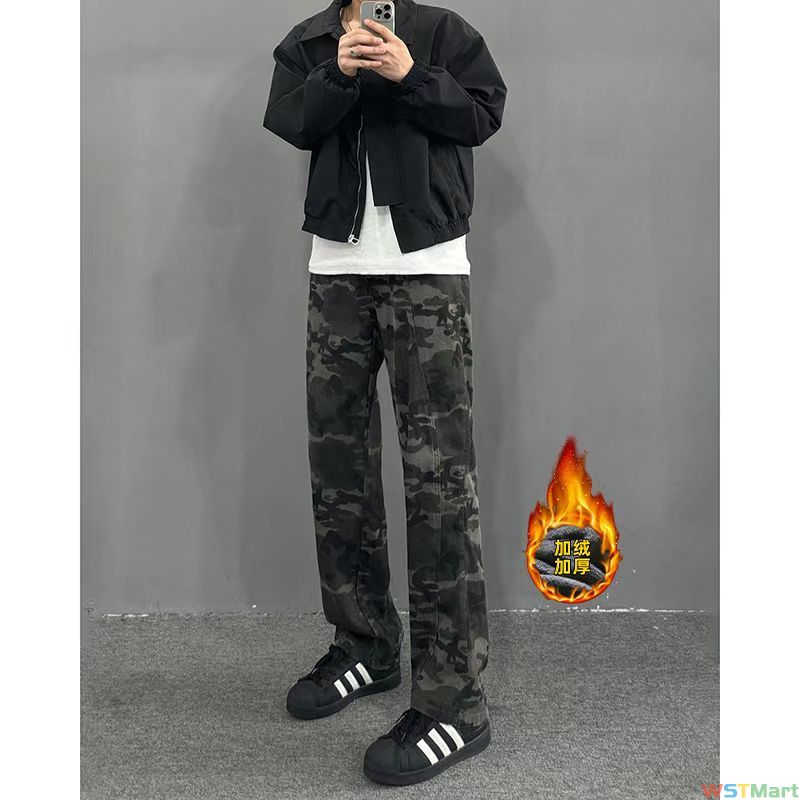 冬季加绒加厚牛仔裤男直筒宽松 宽松版