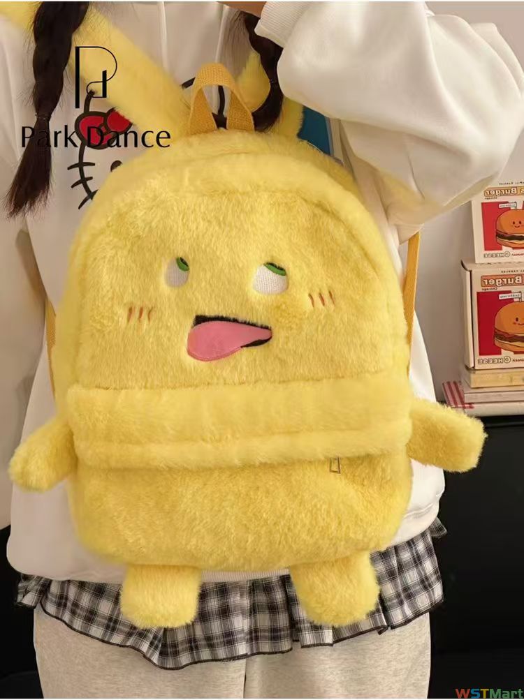Parkdance 搞怪抽象毛绒背包日韩学生书包高颜值卡通小胖龙双肩包
