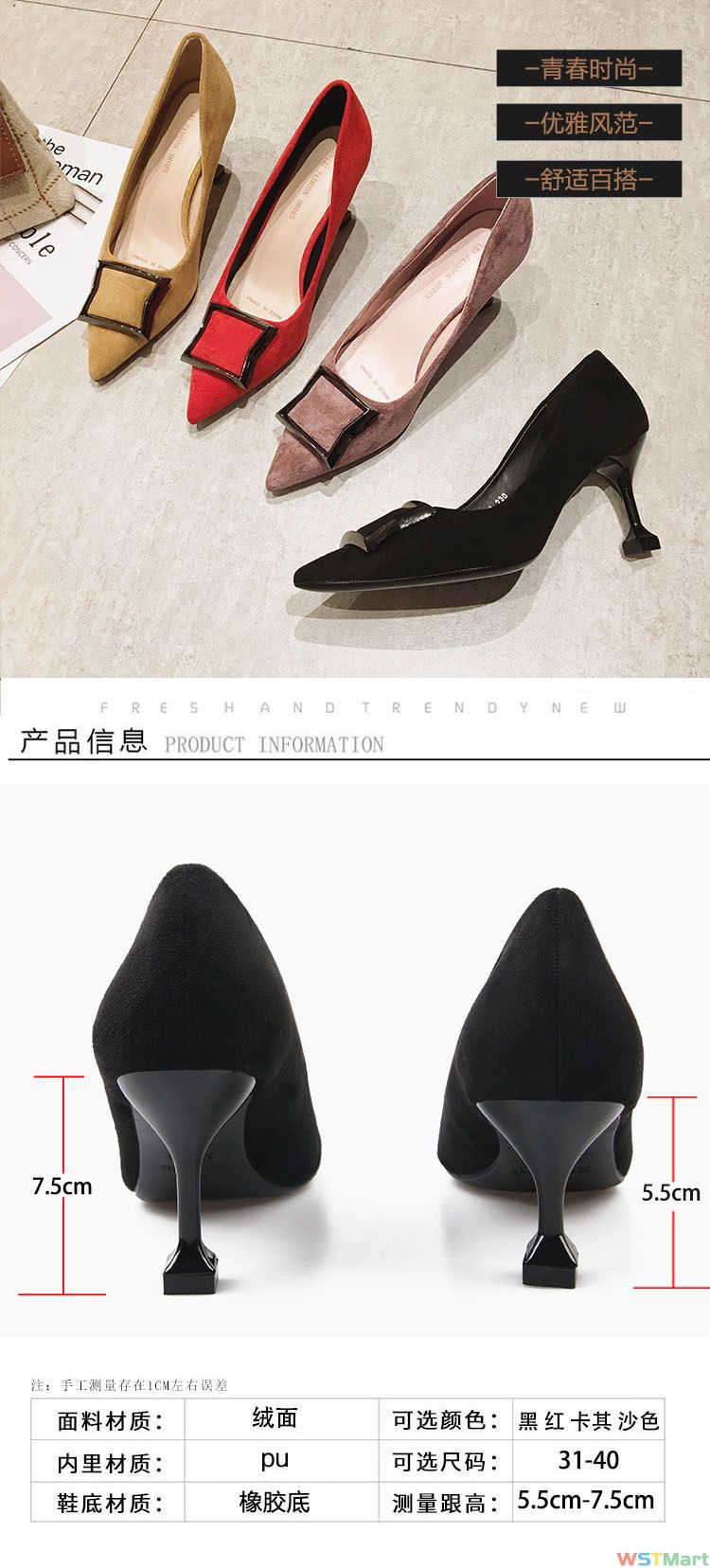 7328-2鞋女2021秋季中跟网红新款黑色少女小清新跟鞋细跟尖头