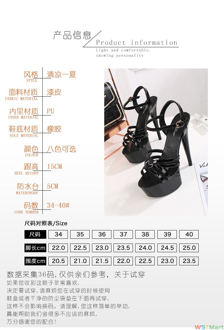 走秀神器模特跟鞋细跟性感黑色防水台15cm恨天超跟凉鞋女夏