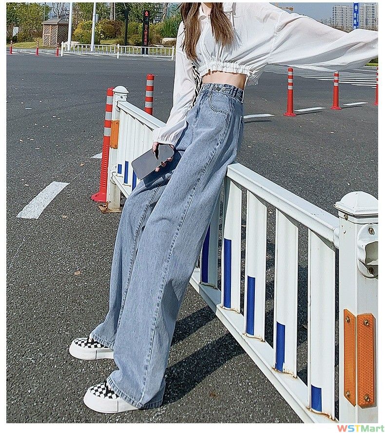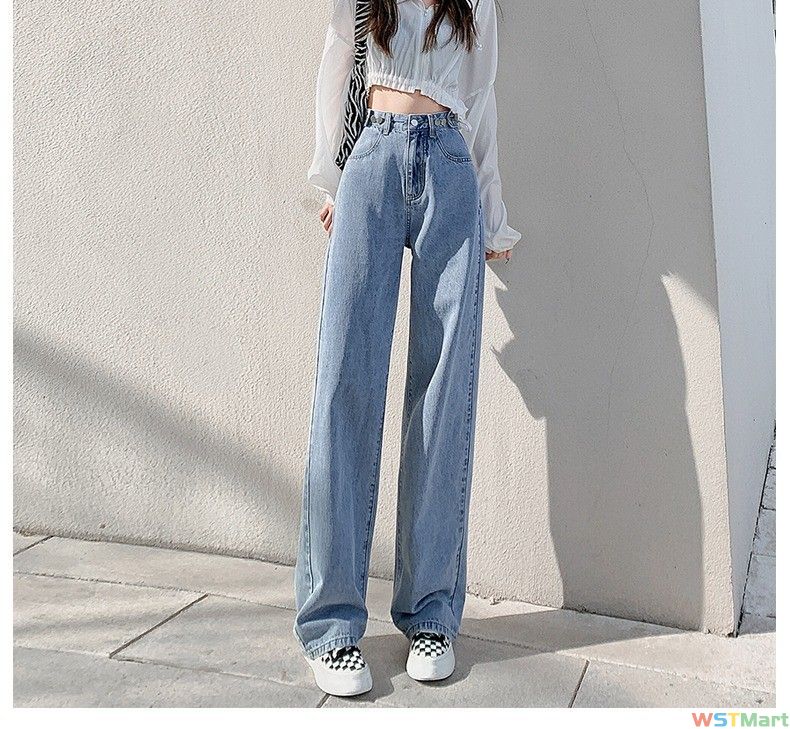 腰牛仔裤女直筒宽松2024新款夏季显瘦小个子垂感拖地阔腿长裤子
