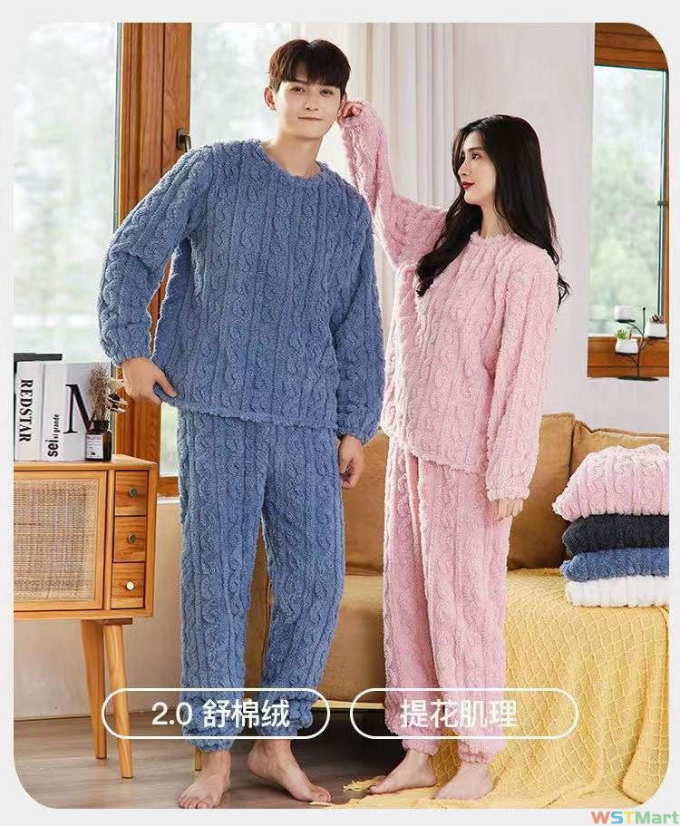 新品促销时尚色提花套装睡衣冬季加厚加绒网红女生情侣休闲套装