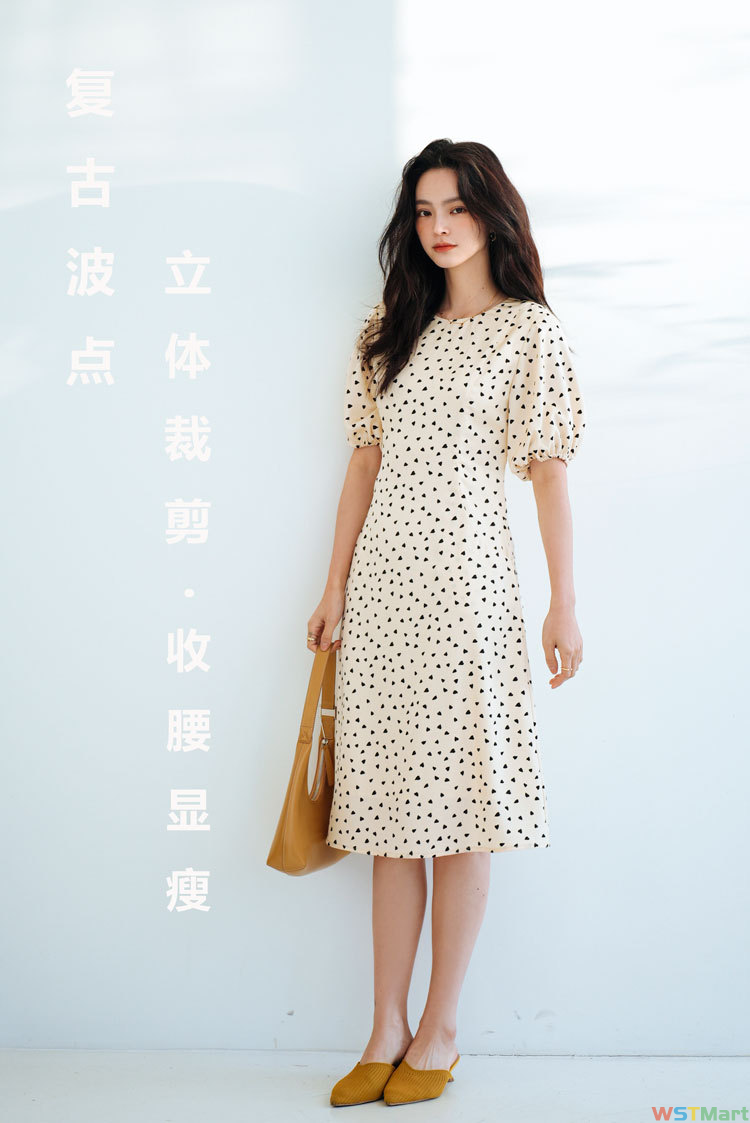 24夏新爱心印花浪漫法式灯笼袖赫本风龄显瘦连衣裙女13895