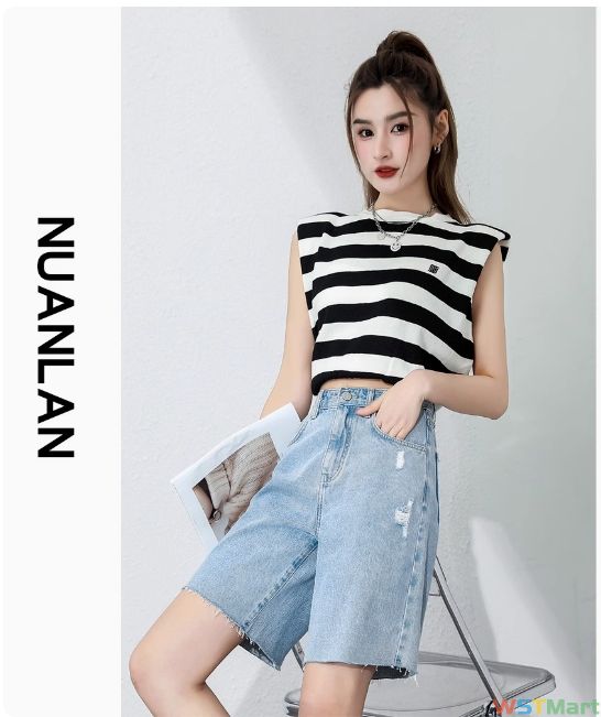 实拍短裤女2024夏装新款宽松腰显瘦直筒阔腿休闲破洞五分牛仔裤