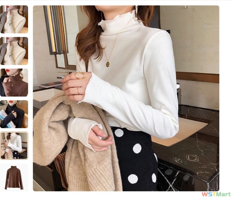 双面德绒半领保暖T恤女秋冬新款加绒加厚木耳边内搭打底衫上衣