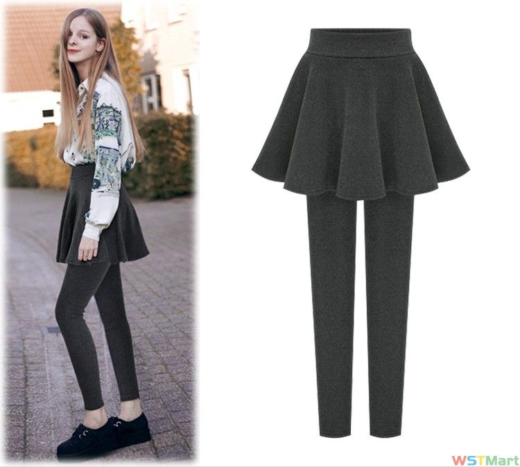秋冬裤子女外穿打底裤加绒加厚百褶裙裤秋冬假两件保暖裤大码女裤