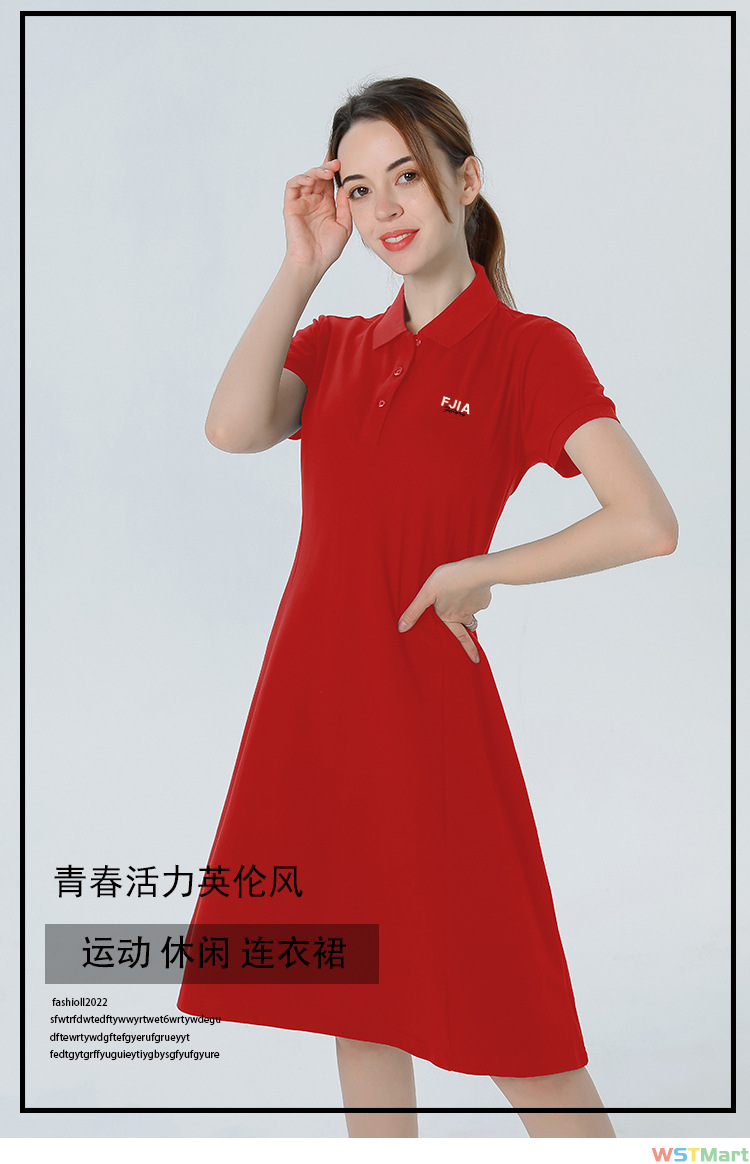翻领连衣裙2024年新款女装夏季短袖中长款过膝A字裙2201