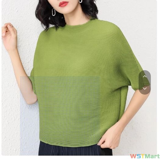 韩系懒惰风t恤定制三宅半袖蝙蝠衫夏季褶皱弹力简约凹凸感女上衣
