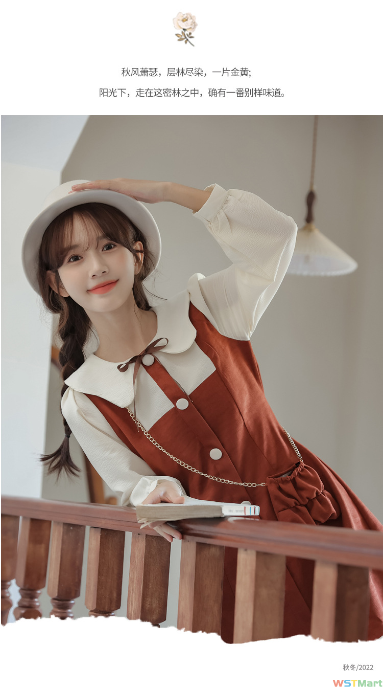 2024夏款小清新甜美碎花雪纺长袖针织吊带马甲两件套连衣裙女学生