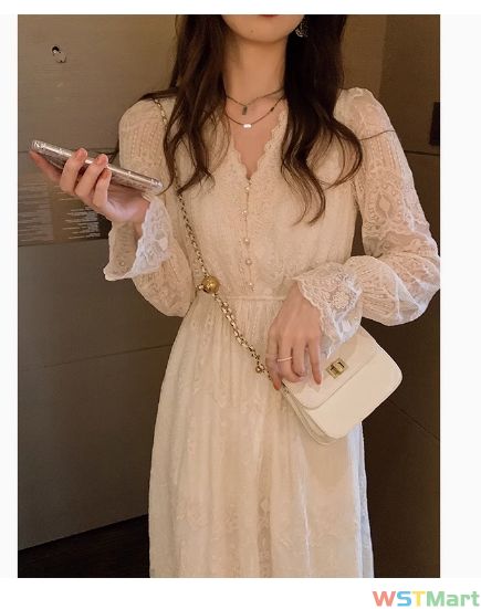 2024春款打底裙新款白色长裙轻奢别致时尚感蕾丝连衣裙子女装秋季
