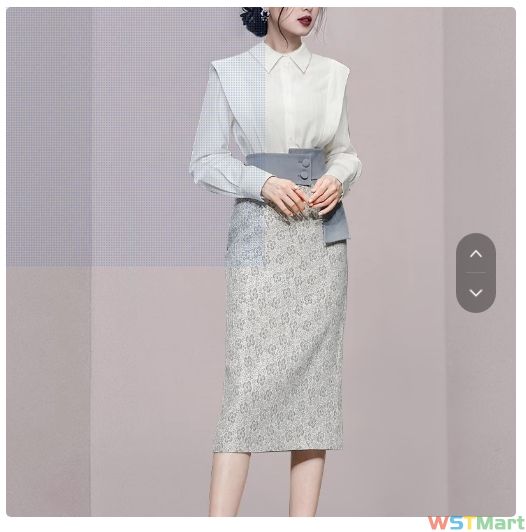 跨境女装2023新款名媛时尚气质两件套白色衬衫衬衣提花包臀连衣裙