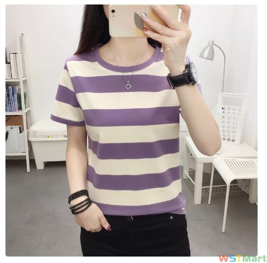 胖mm加加大码宽松显瘦纯棉短袖T恤女装夏装中年妈妈条纹上衣服